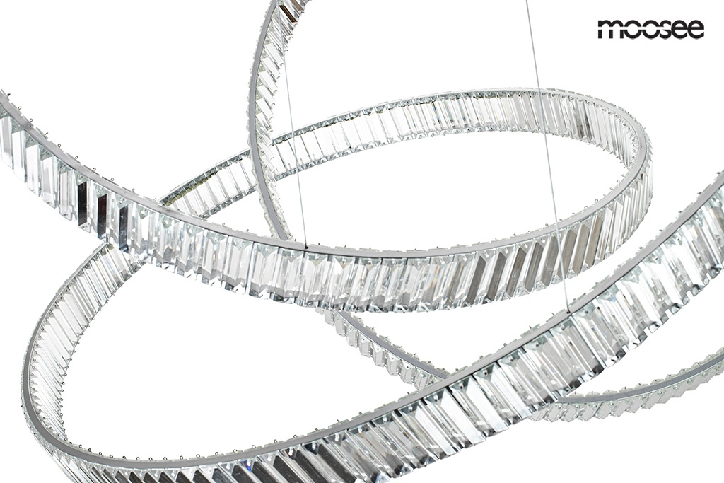 - MOOSEE lampa wisząca WAVE 130 chrom. Piękna, efektowna oprawa, która będzie również pełniła funkcję dekoracji w Twoim wnętrzu. Ciekawy, nowoczesny kształt został stworzony w wyniku połączenia stali oraz kryształów. Światło przenika przez kryształy, tworzą