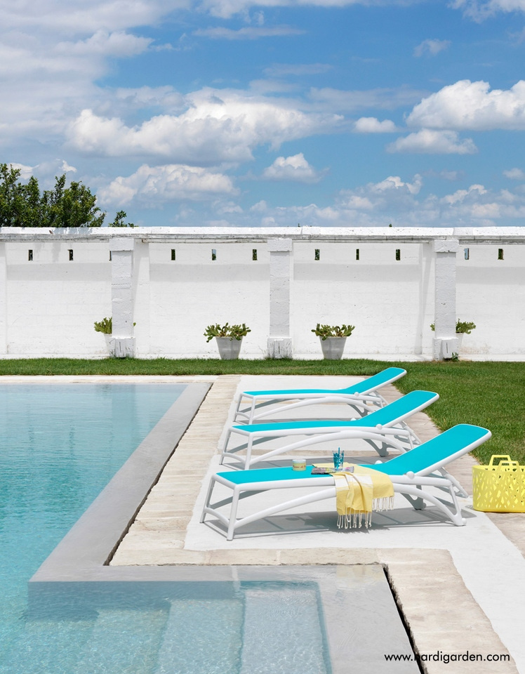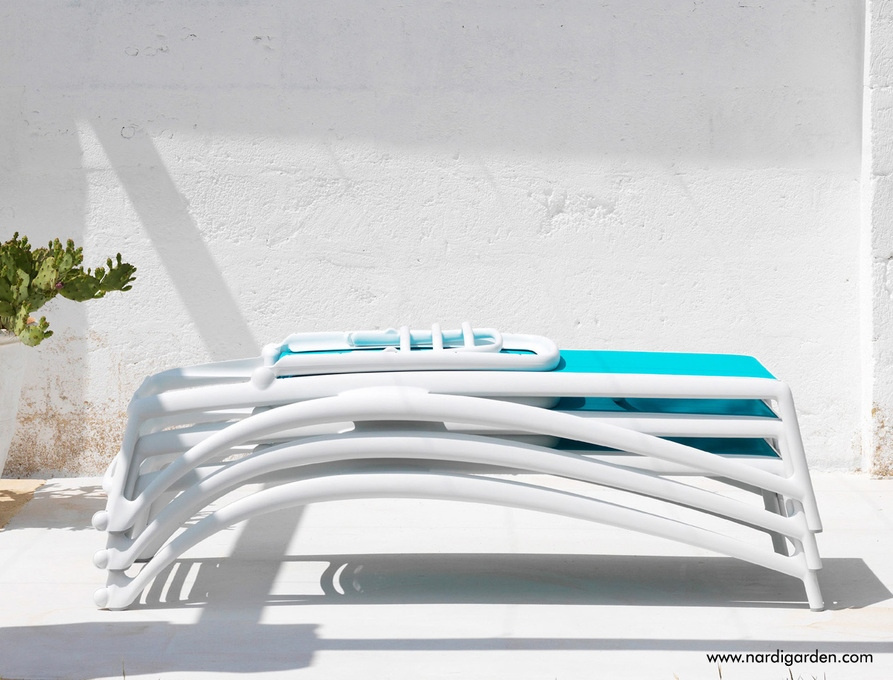 • NARDI leżak ogrodowy ATLANTICO biały / niebieski. Doskonały wybór dla osób, które szukają wygody i chcą cieszyć się spokojnym wypoczynkiem. Wykonany z polipropylenowej żywicy wzmacnianej włóknem szklanym i filtrami UV, wyróżnia się wysoką odpornością na z
