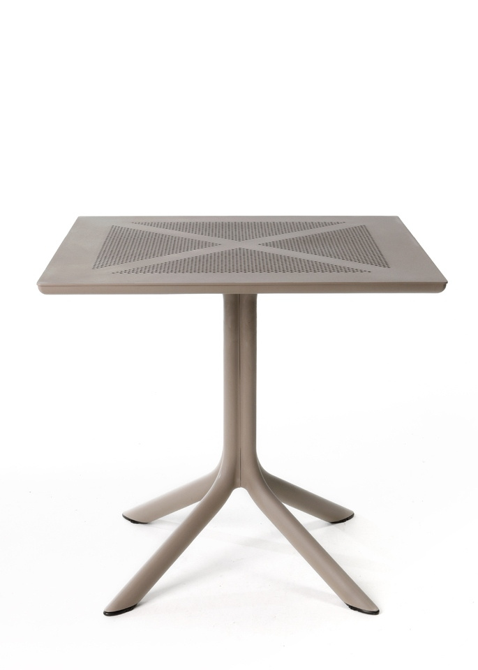 - NARDI stół ogrodowy CLIPX 80 beżowy. Elegancki design o ponadczasowym charakterze. Świetnie sprawdza się na tarasach i w ogrodach, a także doskonale komponuje się z wnętrzami i przestrzeniami restauracyjnymi. Oryginalna forma podstawy i praktyczne detale,