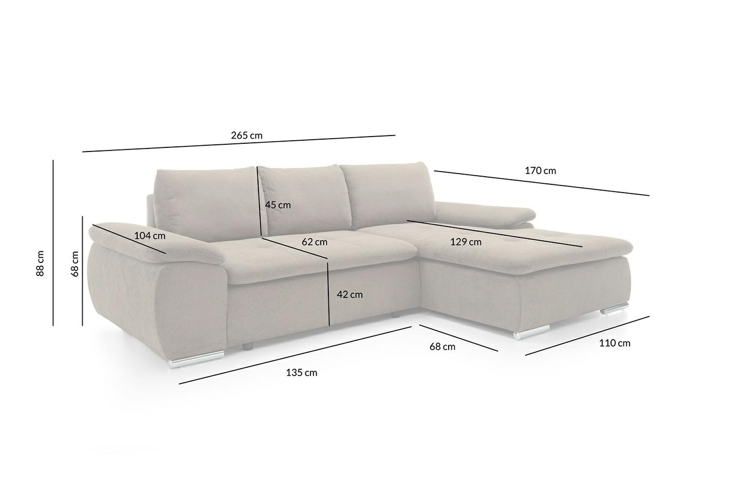 - Gustowna sofa narożna, wyprodukowana w Polsce. Siedzisko oraz oparcie wykonano ze sprężyny falistej oraz pianki PUR, która zapewnia najwyższą trwałość oraz wygodę. Możliwość wyboru tkaniny umożliwia w pełni dostosowanie do indywidualnych preferencji styli