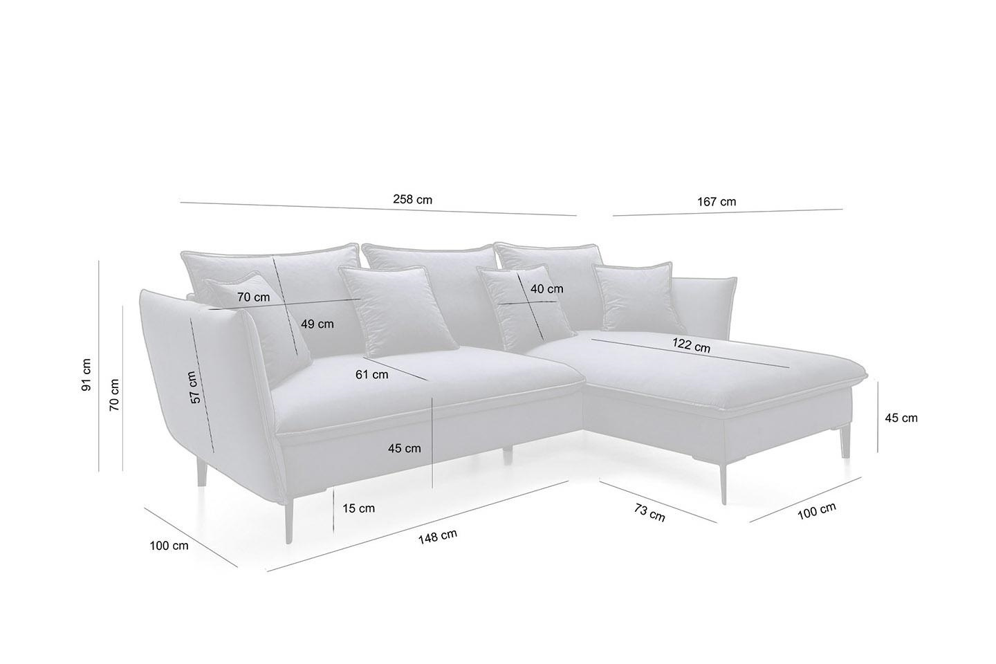 - Nowoczesna sofa narożna, wyprodukowana w Polsce. Siedzisko oraz oparcie wykonano ze sprężyny falistej oraz pianki PUR, która zapewnia najwyższą trwałość oraz wygodę. Dodatkowe poduszki dodają przytulnego charakteru oraz przydadzą się podczas chwil relaksu