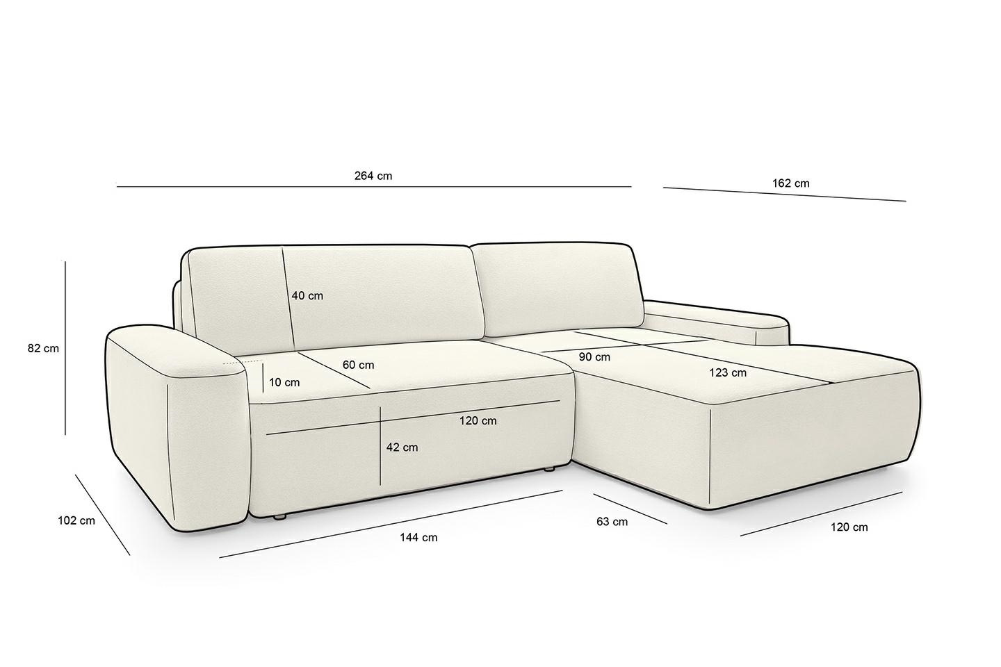 - Stylowa, przytulna sofa narożna, wyprodukowana w Polsce. Siedzisko oraz oparcie wykonano ze sprężyny falistej oraz pianki PUR, która zapewnia najwyższą trwałość oraz wygodę. Możliwość wyboru tkaniny umożliwia w pełni dopasowanie sofy do swoich preferencji