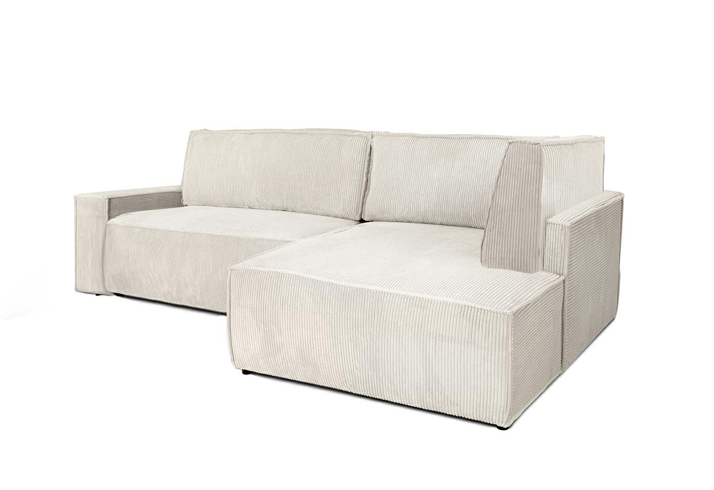 - Nowoczesna, funkcjonalna sofa narożna wyprodukowana w Polsce. Siedzisko i oparcie wykonano ze sprężyny falistej oraz pianki PUR, która zapewnia najwyższą trwałość oraz wygodę. Prezentowana na zdjęciu tkanina to przyjemna w dotyku tkanina sztruksowa w jasn