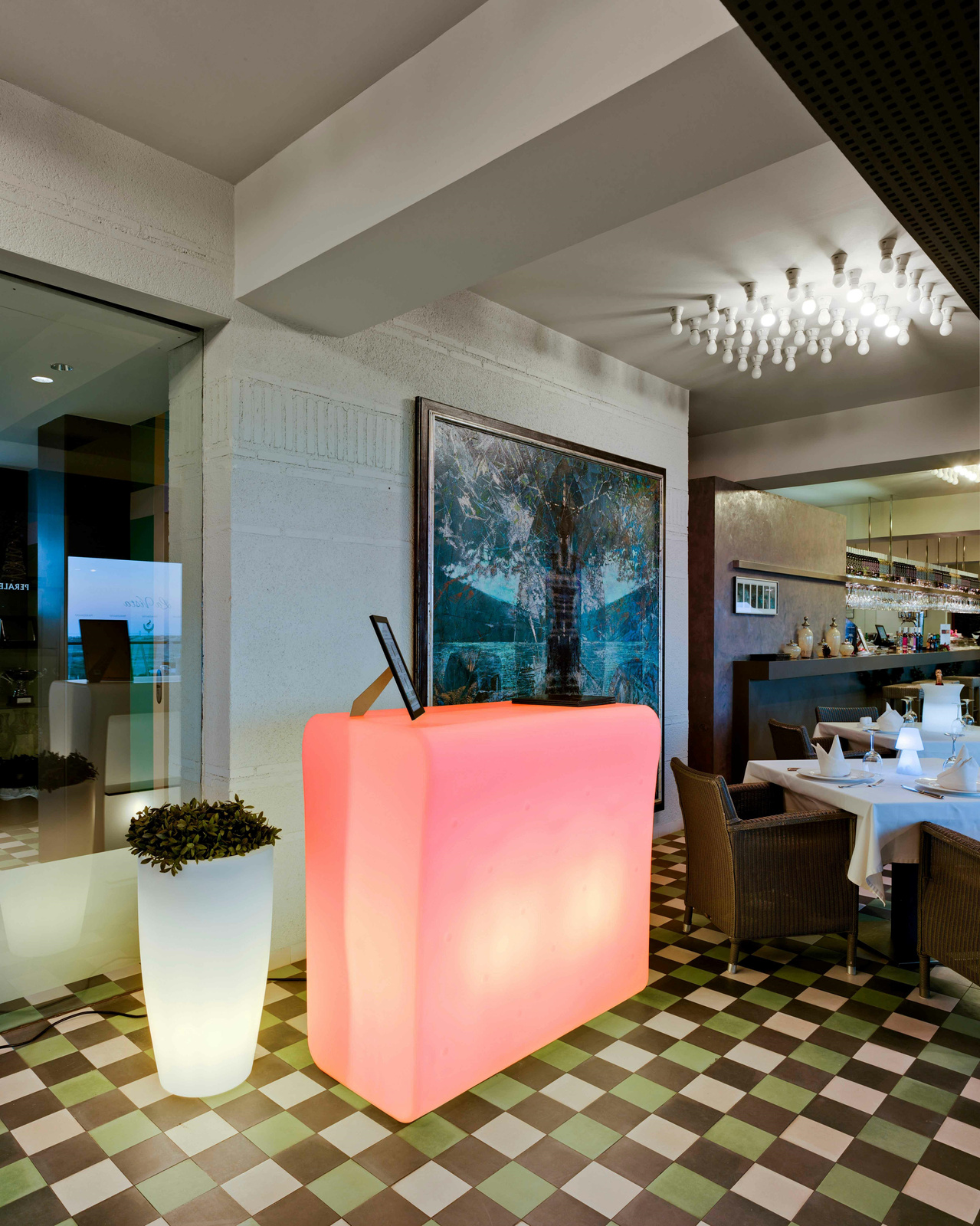 - Barek Creta 120 Solar od New Garden. New Garden to hiszpańska marka specjalizująca się w wyjątkowych meblach i lampach ogrodowych wykonanych z polietylenu, który jest lekki i odporny na warunki atmosferyczne. Wyposażony jest w możliwość ładowania słoneczn