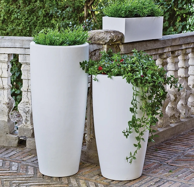 - Donica Bambu 70 C od New Garden. New Garden to hiszpańska marka specjalizująca się w wyjątkowych meblach i lampach ogrodowych. Bambu to efektowna, cylindryczna donica o wysokości 70 cm i średnicy 40 cm zasilana kablem. Całość wykonana jest z polietylenu w