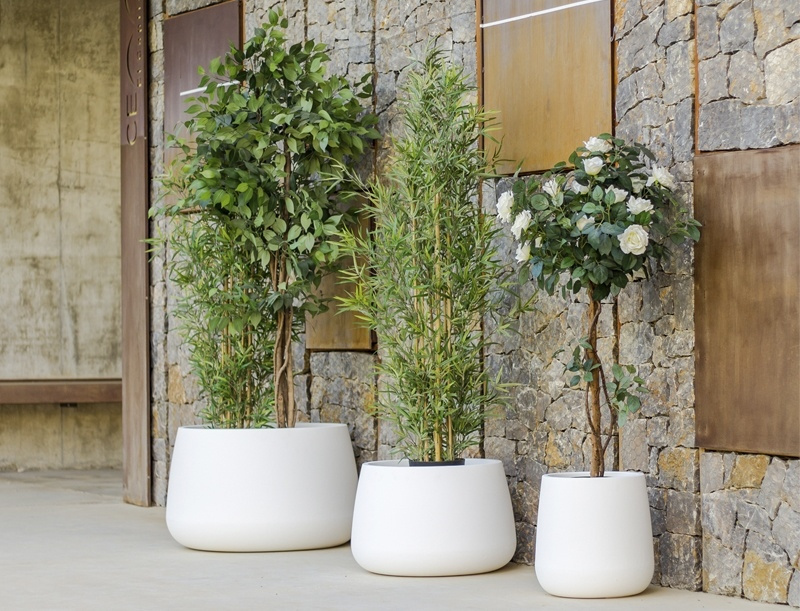 - Camelia 60, lampa w kształcie małej donicy od New Garden. New Garden to hiszpańska marka specjalizująca się w wyjątkowych meblach i lampach ogrodowych. Całość wykonana jest z polietylenu w kolorze białym. Camelia będzie praktyczną ozdobą otoczenia. Meble