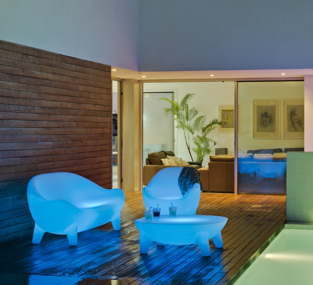 - NEW GARDEN fotel ARUBASOLAR & BATTERY Hiszpańska marka specjalizująca się w wyjątkowych meblach i lampach ogrodowych. Aruba to futurystyczny fotel, który swoim okrągłym kształtem przyciąga uwagę, wyposażony w system Solar Smarttech, podświetlenie LED w ko