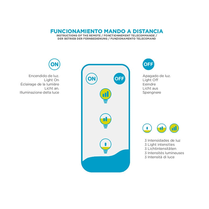 Zawiera również pilota do włączania i wyłączania oraz regulacji intensywności.