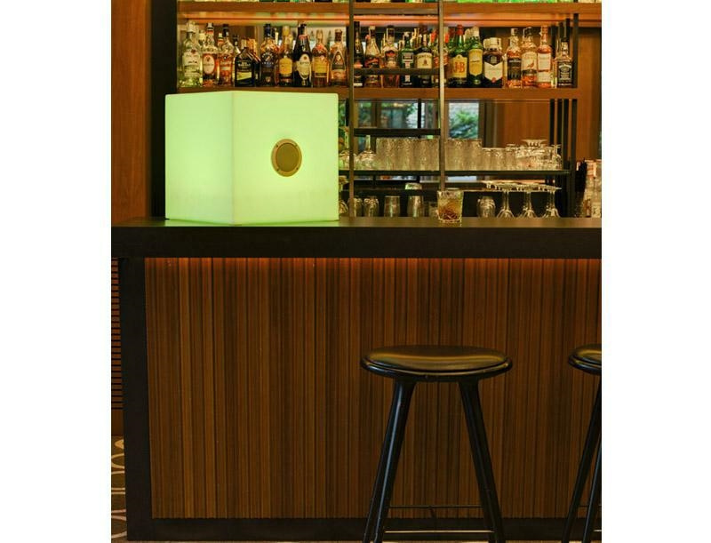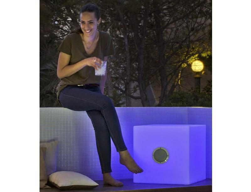 - Lampa z głośnikiem Cuby 45 Play od New Garden. New Garden to hiszpańska marka specjalizująca się w wyjątkowych meblach i lampach ogrodowych. Wyposażona jest w głośnik, system Smarttech, podświetlenie LED w konfiguracji kolorystycznej RGB + sterowanie pilo