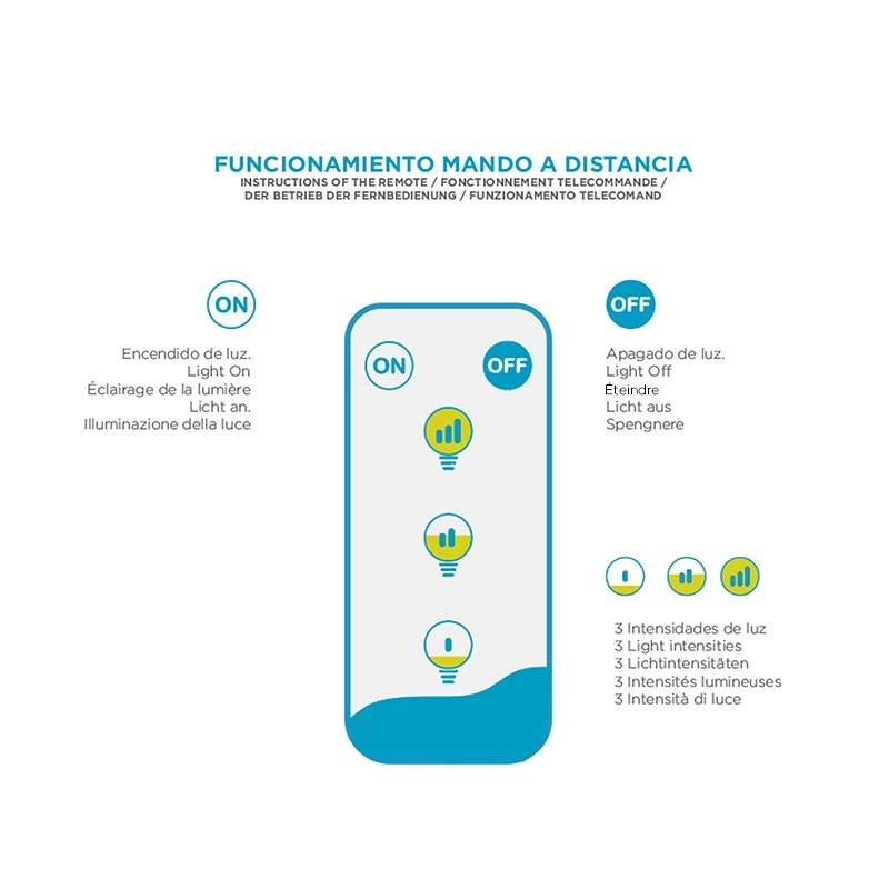 dzięki namagnesowanej podstawie. W zestawie znajduje się również pilot do włączania, wyłączania i regulowania intensywności.
