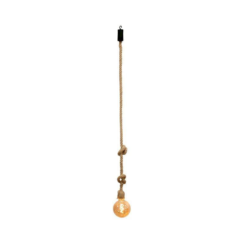 - NEW GARDEN lampa wisząca SIMONA 180.. Bezprzewodowa lampa Simona wyróżnia się stylem vintage. Posiada 180cm sznurek pokryty naturalnym włóknem, który można regulować, wykonując proste węzły. Zawiera panel słoneczny do ładowania oraz pilota do włączania i