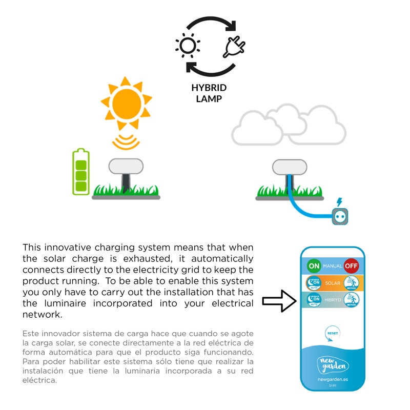 - NEW GARDEN latarnia ogrodowa PEPITA 215 HYBRID SOLAR STREET LIGHT. Latarnia słoneczna wykonana z polietylenu to niezbędny element ogrodu, jej zaawansowany system technologii hybrydowej łączy ładowanie słoneczne i elektryczne, dzięki czemu latarnia jest w