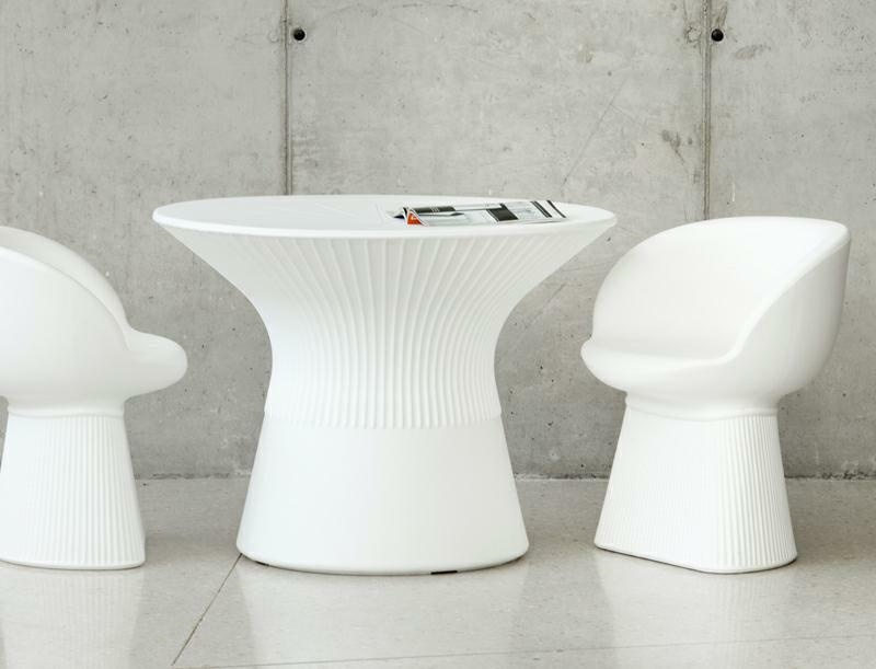Okrągły stół wyposażony jest w system Solar Smarttech, podświetlenie LED w konfiguracji kolorystycznej RGB, pilot.