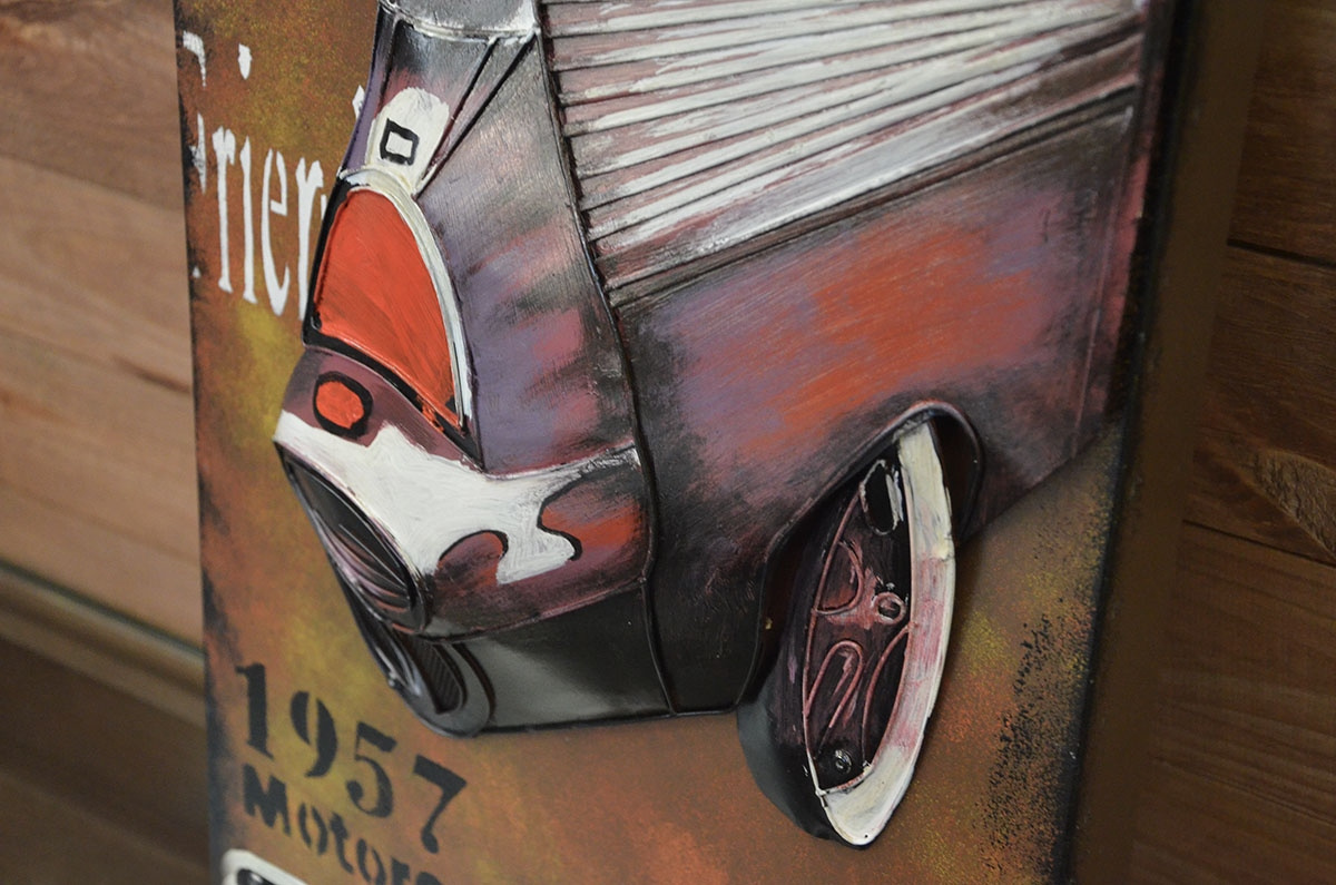 - Cały obraz wykonano z blachy a następnie pomalowano. Obraz postarzany, naturalna rdza. Wymiary: wys. 57 cm / szer. 30 cm / gł. 8 cm