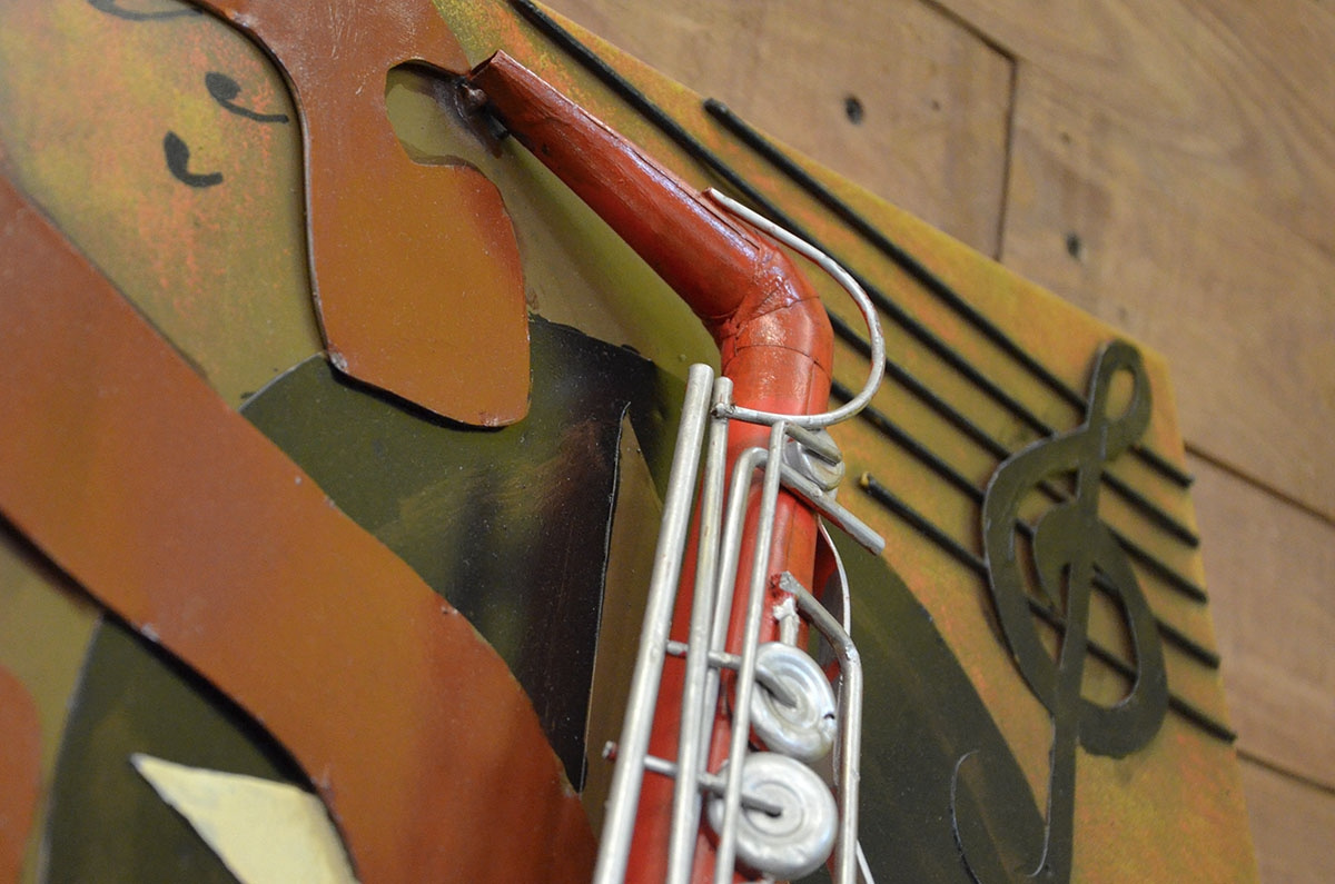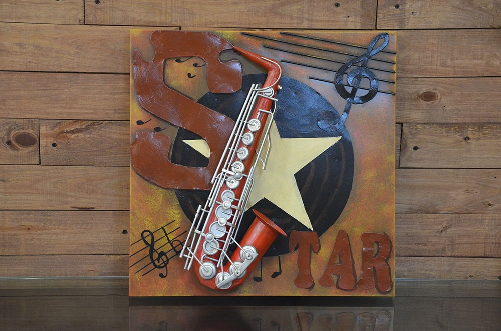 - Cały obraz wykonano z blachy a następnie pomalowano. Obraz postarzany, naturalna rdza. Wymiary: wys. 48 cm / szer. 48 cm / gł. 12 cm.
