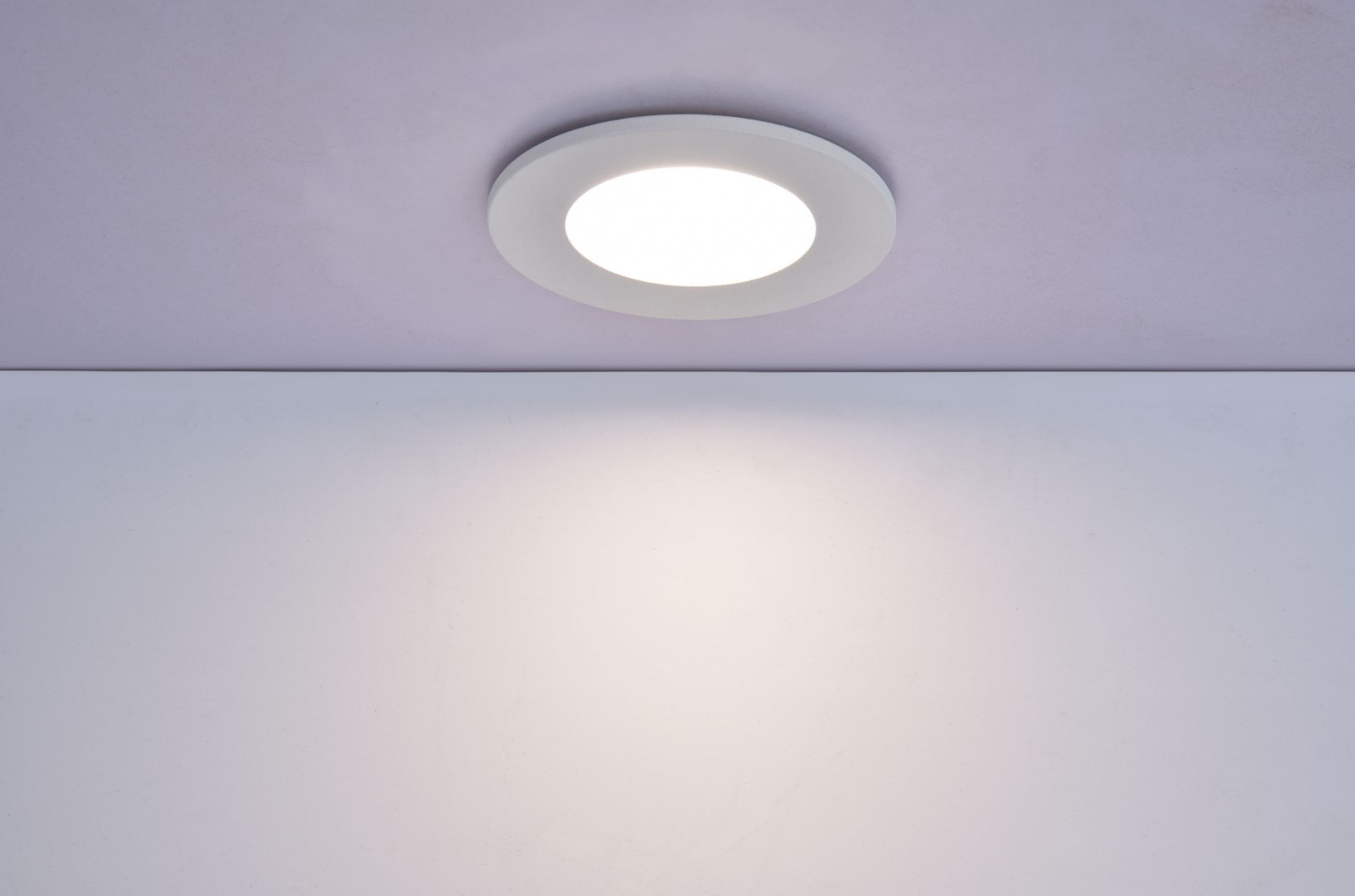 • Białe oczko podtynkowe OPTIMA dzięki wysokiemu stopniowi ochrony IP65 można zamontować w łazience. Możesz zarówno przyciemnić światło, jak i określić jego barwę za pomocą pilota (9702315361) lub aplikacji Lutec Connect, dzięki czemu z łatwością stworzysz