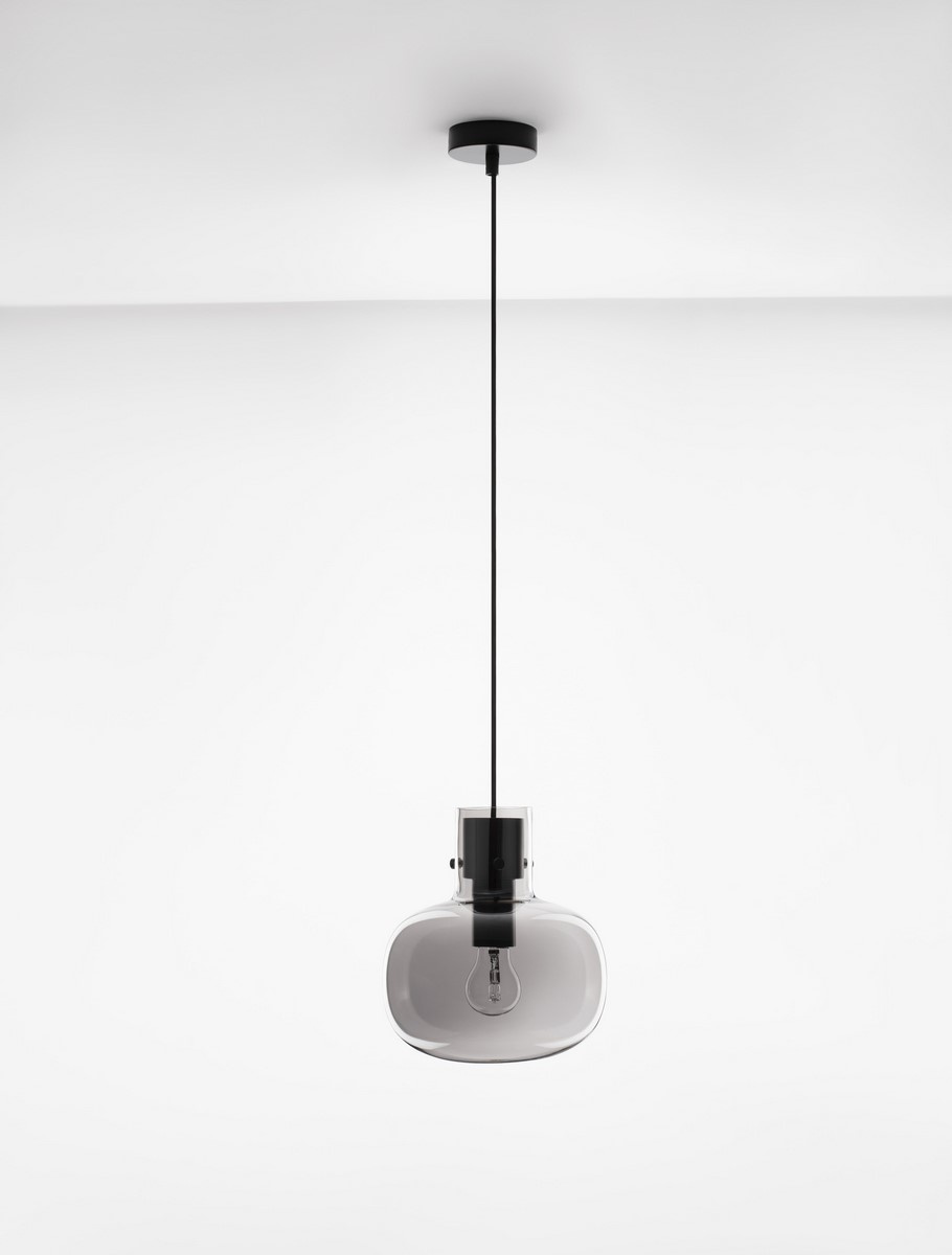 - PADRE od Luces Exclusivas. Czarne wykończenia i przydymiony klosz stworzą niepowtarzalny klimat w salonie.