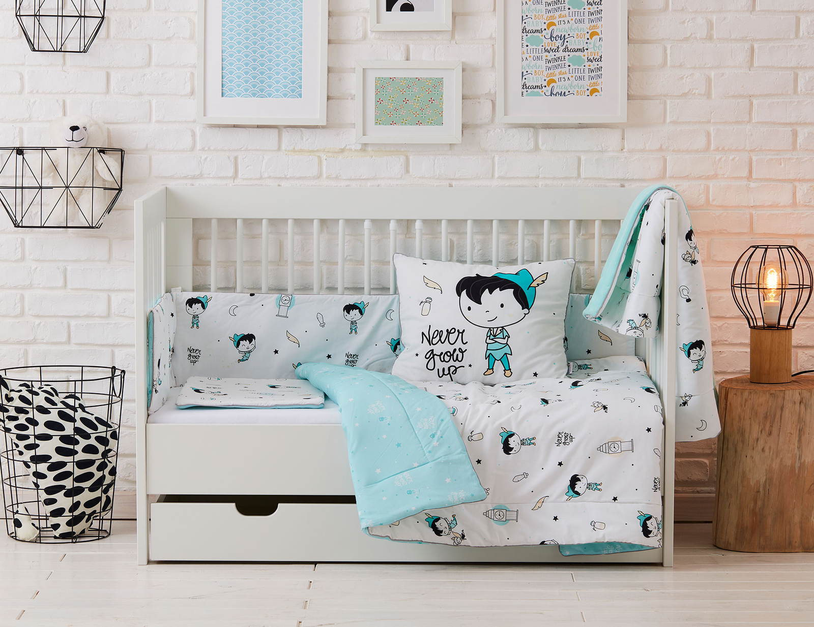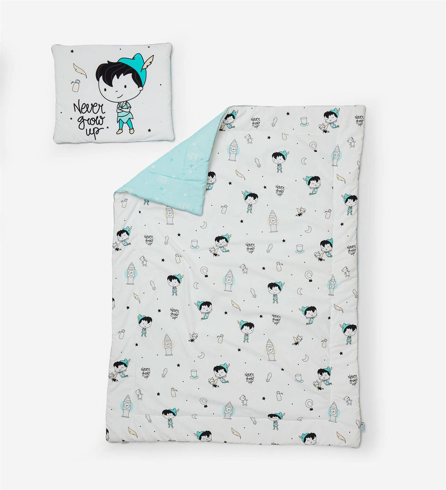 PIOTRUŚ PAN pościel z wypełnieniem i poduszką płaską (duży wzór - panel)