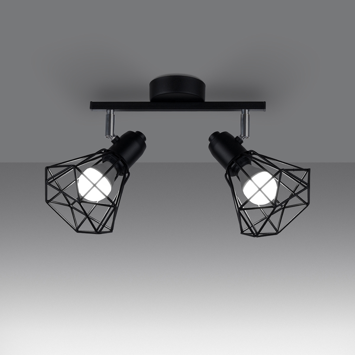 - Źródło światła: E14, 2x max 10 W LED, ~230V, 50Hz, IP20, klasa ochronności IŹródło światła nie jest w komplecie. Wymiary: 31/17/19 cmWymiary klosza: 10/15 cmMateriał: stalKolor: czarny
