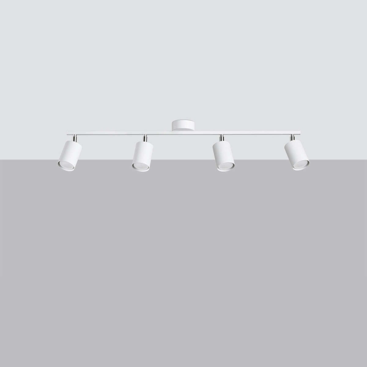 - Źródło światła: GU10, 4x max 10W LED, ~230V, 50Hz, IP20, klasa ochronności I Źródło światła nie jest w komplecie. Wymiary: 100/24/20 cm Materiał: stal Kolor: biały