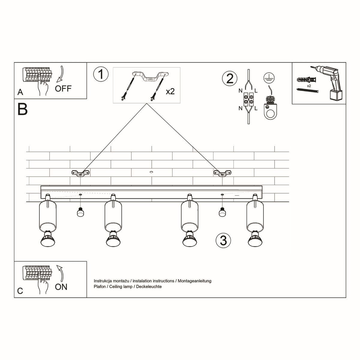 - Źródło światła: GU10, 4x max 10W LED, ~230V, 50Hz, IP20, klasa ochronności IŹródło światła nie jest w komplecie.Wymiary: 80/6/16 cmMateriał: stalKolor: biały