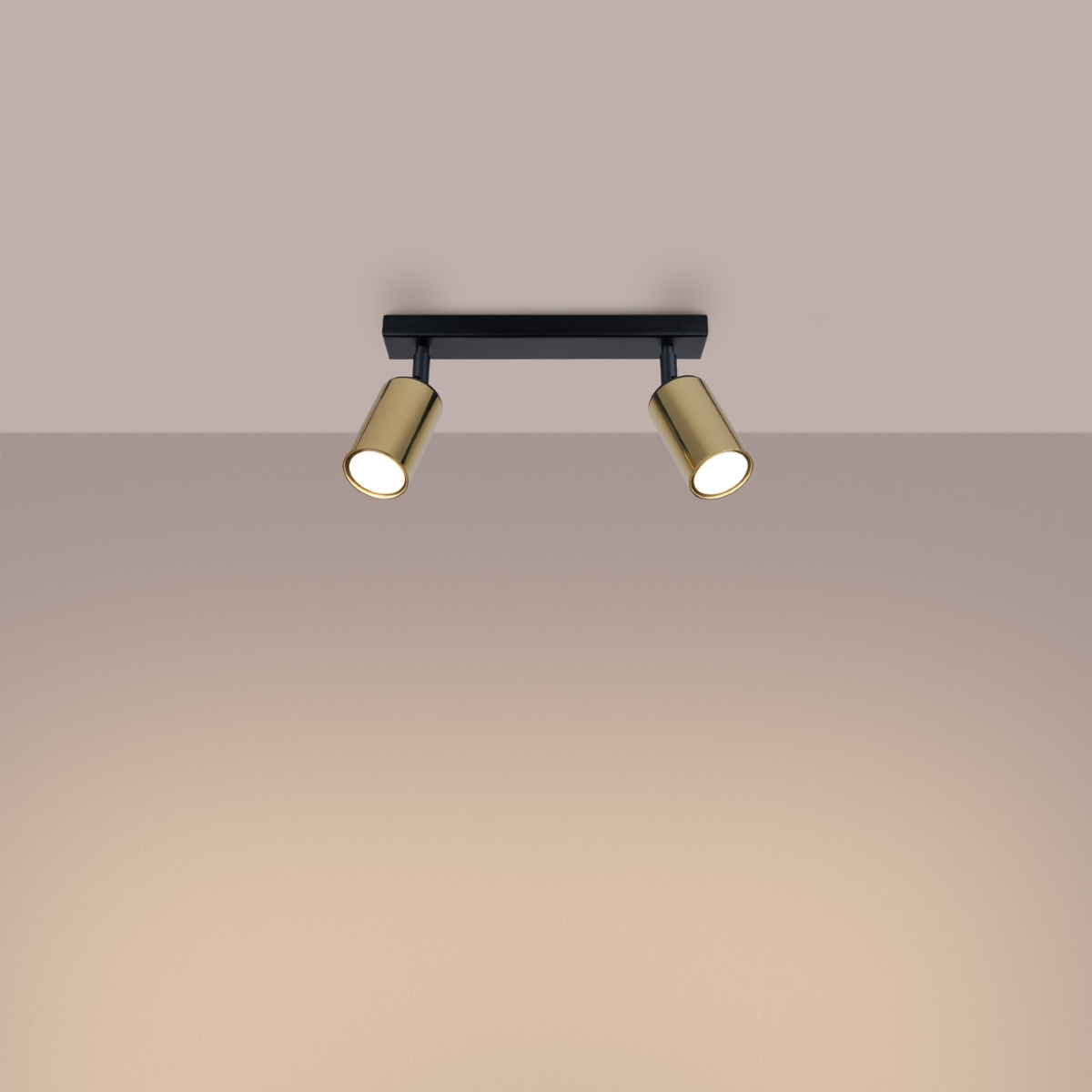 - Źródło światła: GU10, 2x max 10W LED, ~230V, 50Hz, IP20, klasa ochronności IŹródło światła nie jest w komplecie.Wymiary: 30/6/18,5 cmMateriał: stalKolor: czarny, złoty
