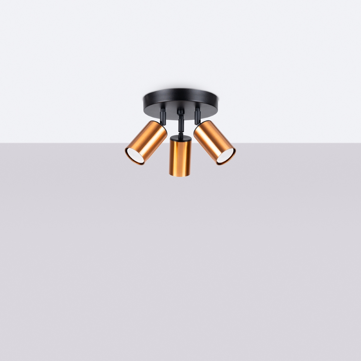 • Źródło światła: GU10, 3x max 10W LED ~230V, 50Hz, IP20, klasa ochronności IŹródło światła nie jest w komplecie. Wymiary: 19,5/19,5/20 cmMateriał: stalKolor: czarny, miedź