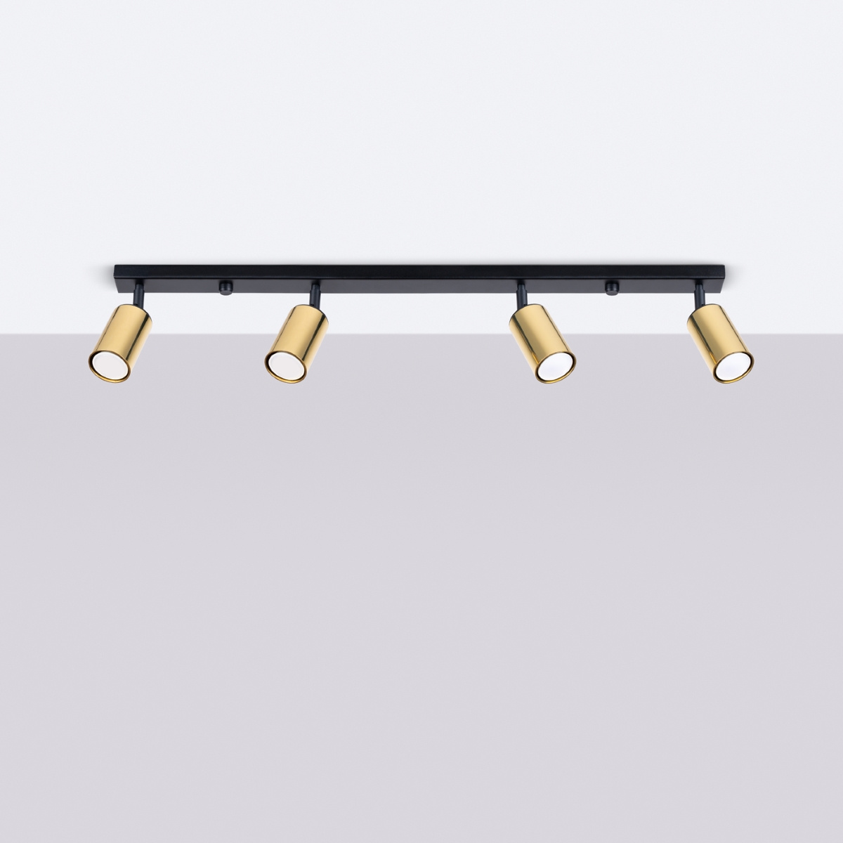 - Źródło światła: GU10, 4x max 10W LED, ~230V, 50Hz, IP20, klasa ochronności IŹródło światła nie jest w komplecie.Wymiary: 82/6/18,5 cmMateriał: stalKolor: czarny, złoty