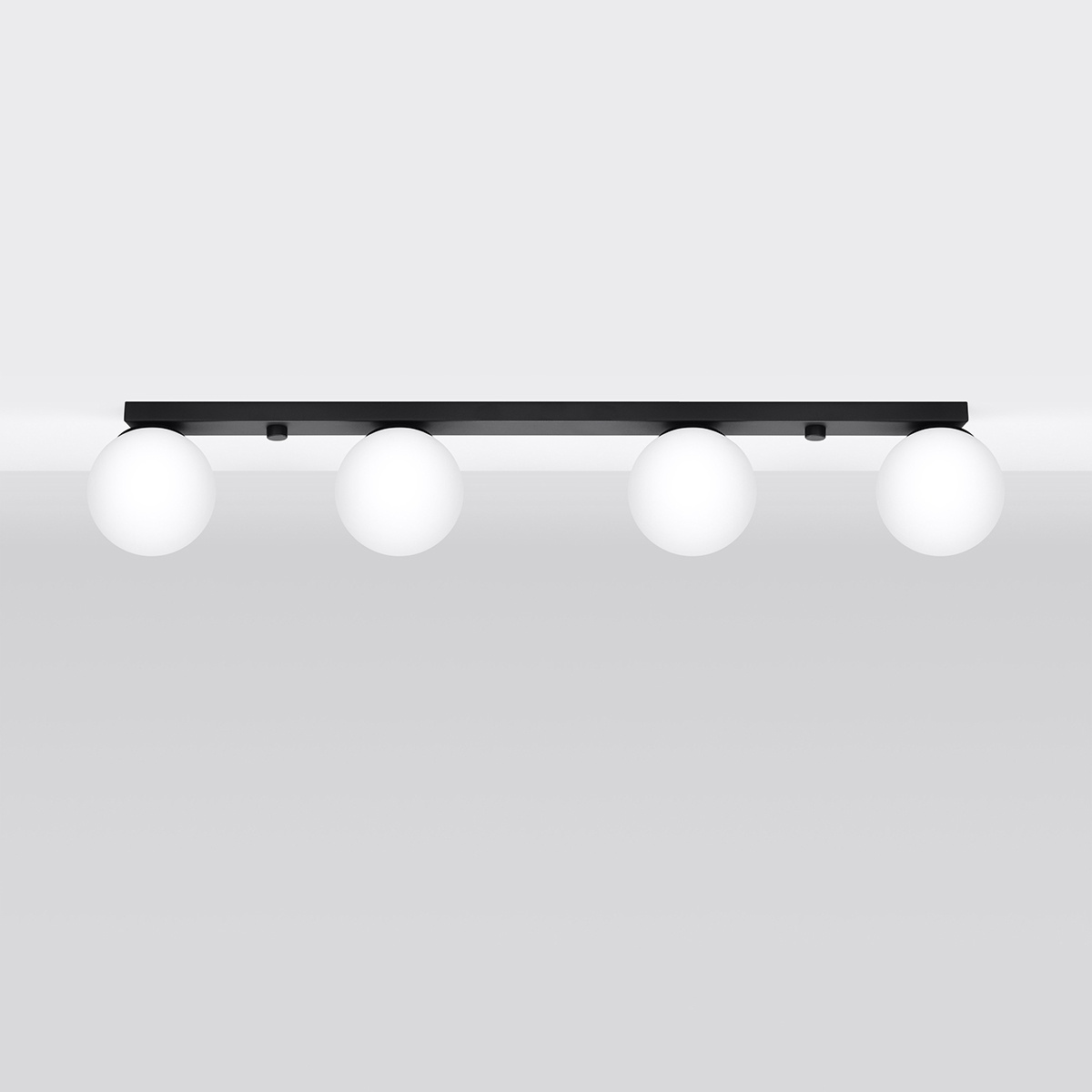 • Źródło światła: G9, 4x max 8W LED, ~230V, 50Hz, IP20, klasa ochronności IŹródło światła nie jest w komplecie.Wymiary: 88/12/14,5 cmMateriał: stal, szkło Kolor: czarny