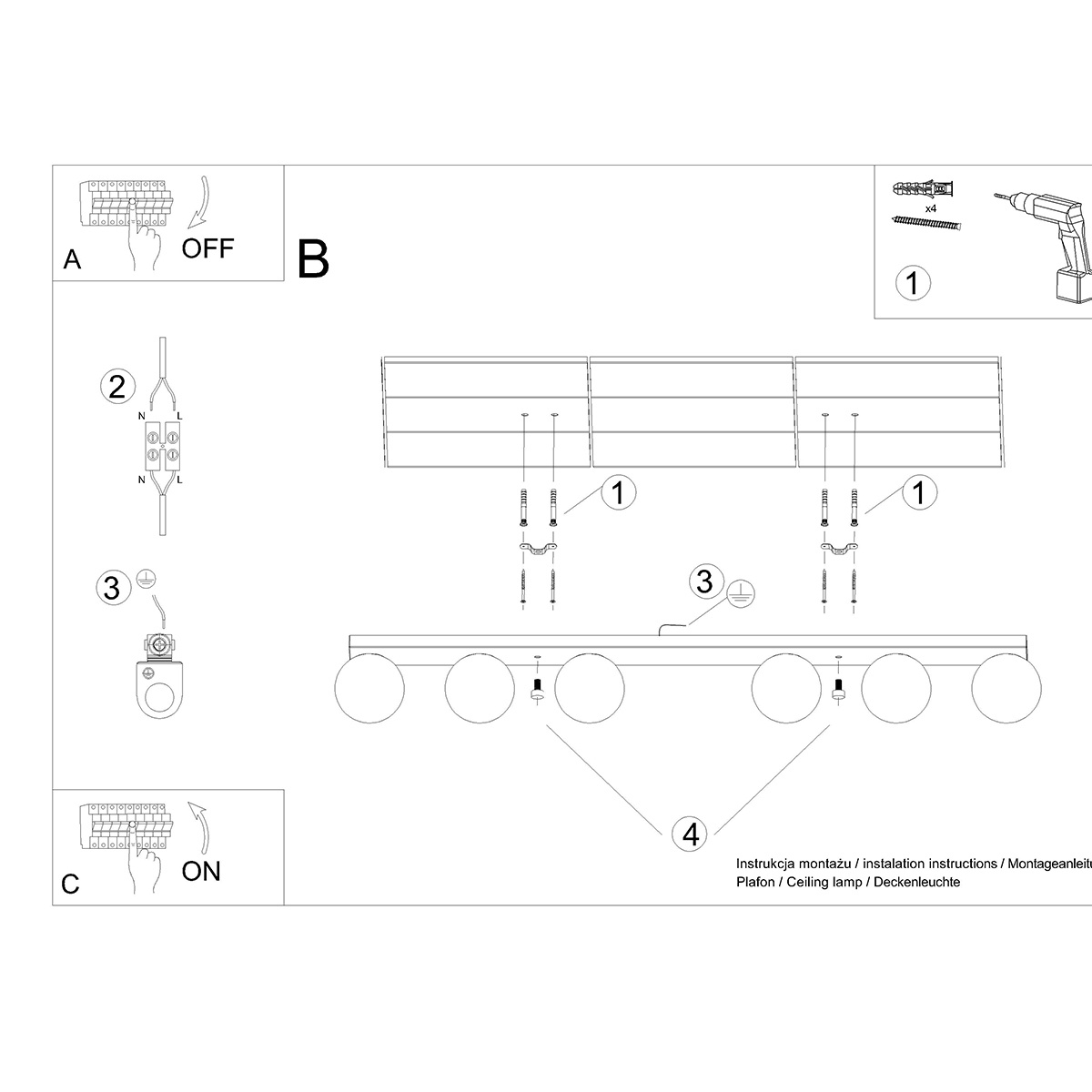 - Źródło światła: G9, 6x max 8W LED, ~230V, 50Hz, IP20, klasa ochronności IŹródło światła nie jest w komplecie.Wymiary: 120/12/14,5 cmMateriał: stal, szkło Kolor: biały