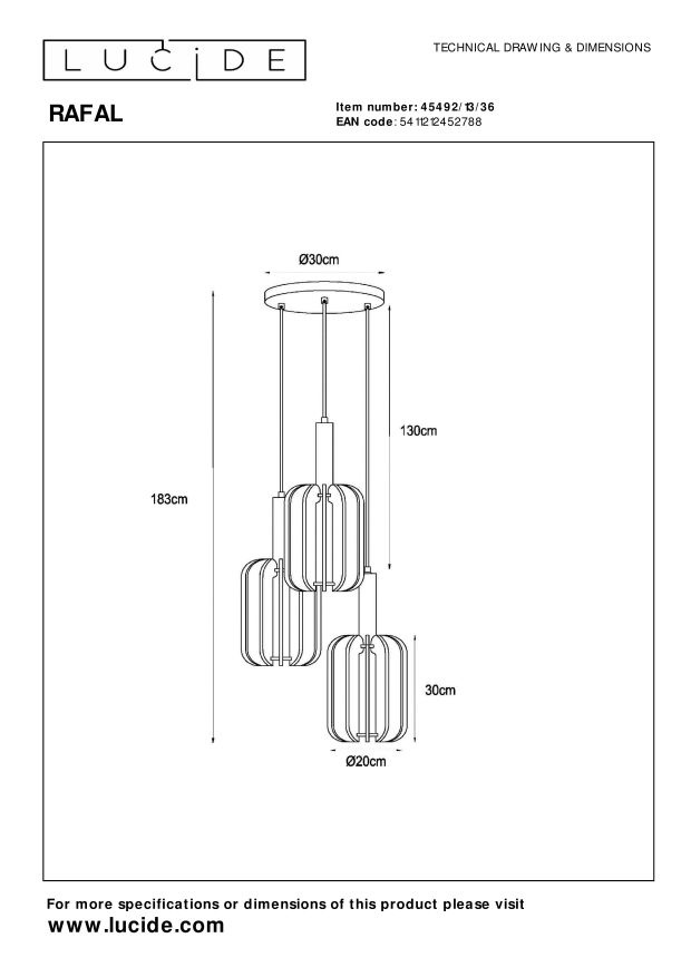 - RAFAL Lampa wisząca D 50 cm 3xE27. Kolor szary.