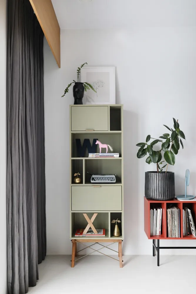 Regał TALL POCKET SLIM to mebel idealny dla osób, które szukają wąskiego, pojemnego regału, który pomieści wszystkie szpargały dnia codziennego i nie zajmie przy tym dużo miejsca w pokoju.