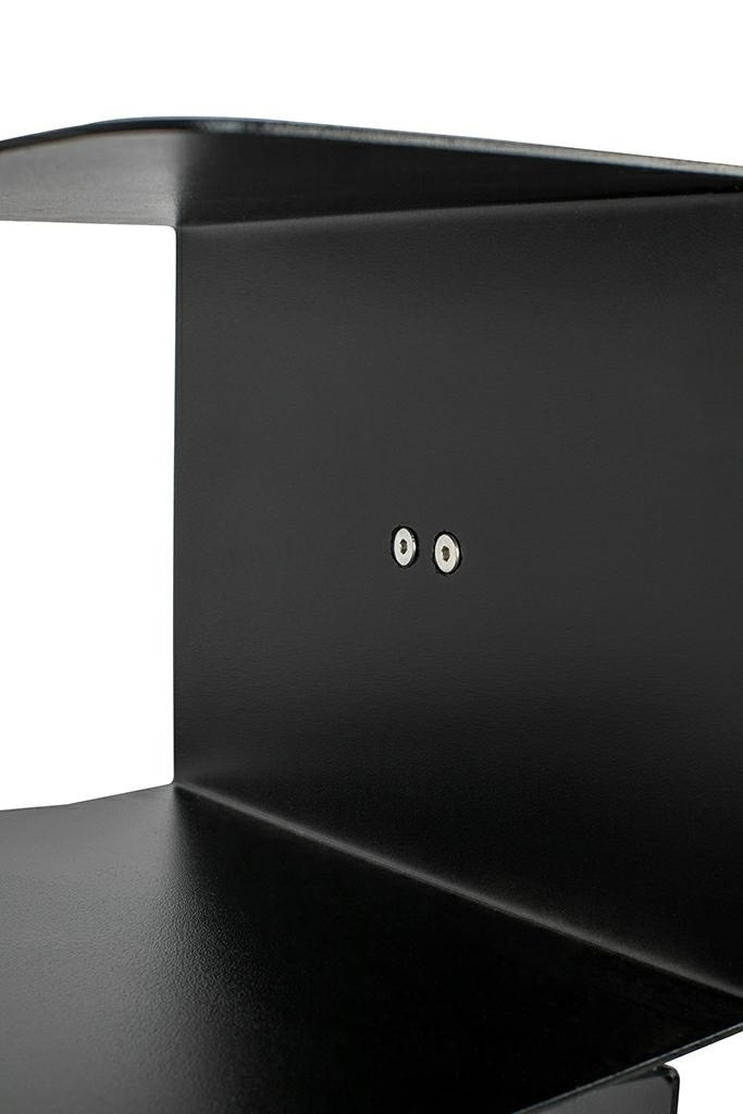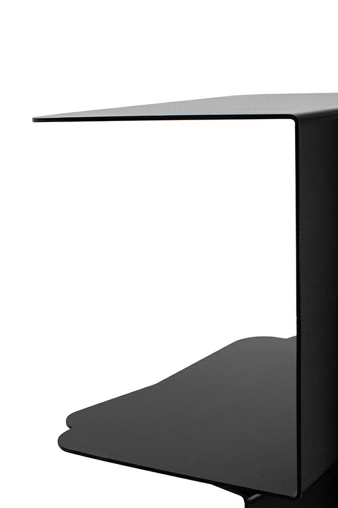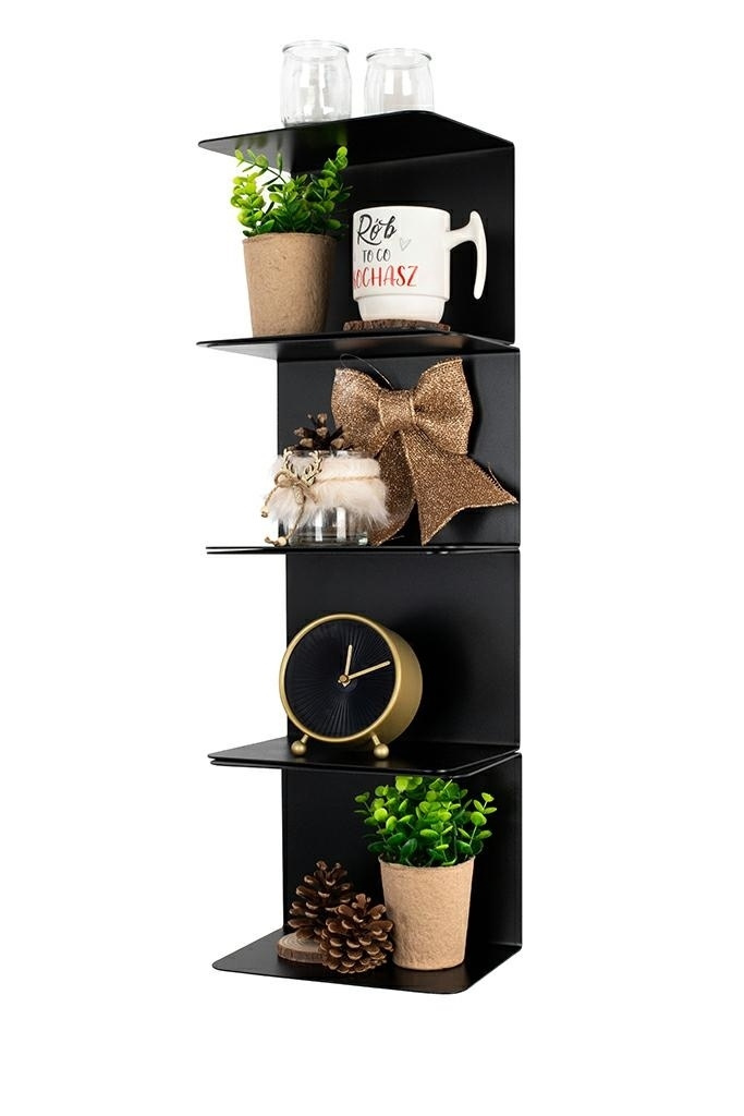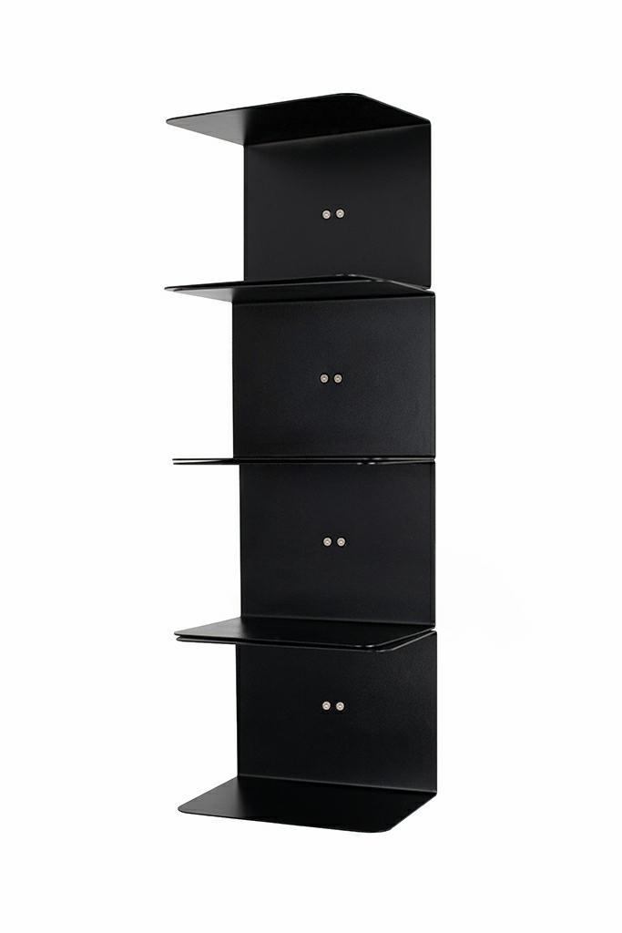 - Regał TIER zrobiono z metalu w kolorze czarnym. Posiada on cztery półki, mocowane jedna na drugiej. Całość tworzy stabilną konstrukcję na szerokiej metalowej podstawie. Mebel sprawdzi sie w domu i w biurze. Wymiary: wys. 79,5 cm / szer. 26 cm / gł. 17 cm