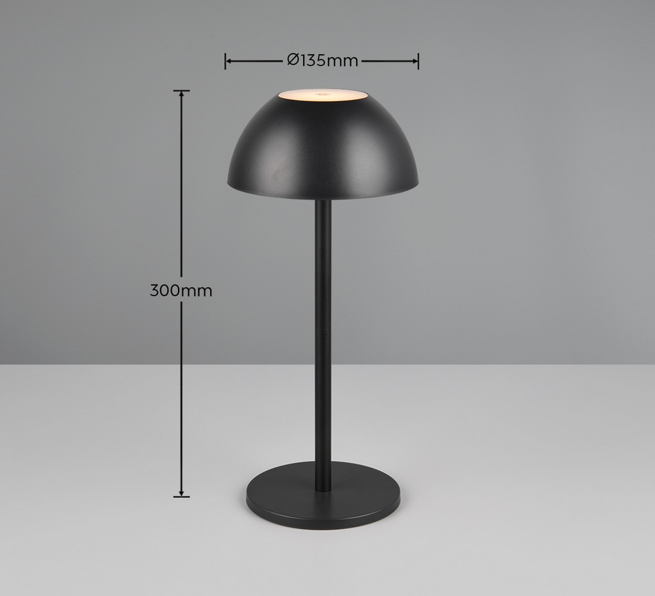 - RICARDO Kolor czarny mat. Funkcja dotykowa 4 poziomy. Akumulator ładowany przez złącze USB-C. Czas ładowania 4h, czas świecenia 4h. Oświetlenie w górę i w dół IP54