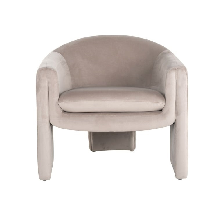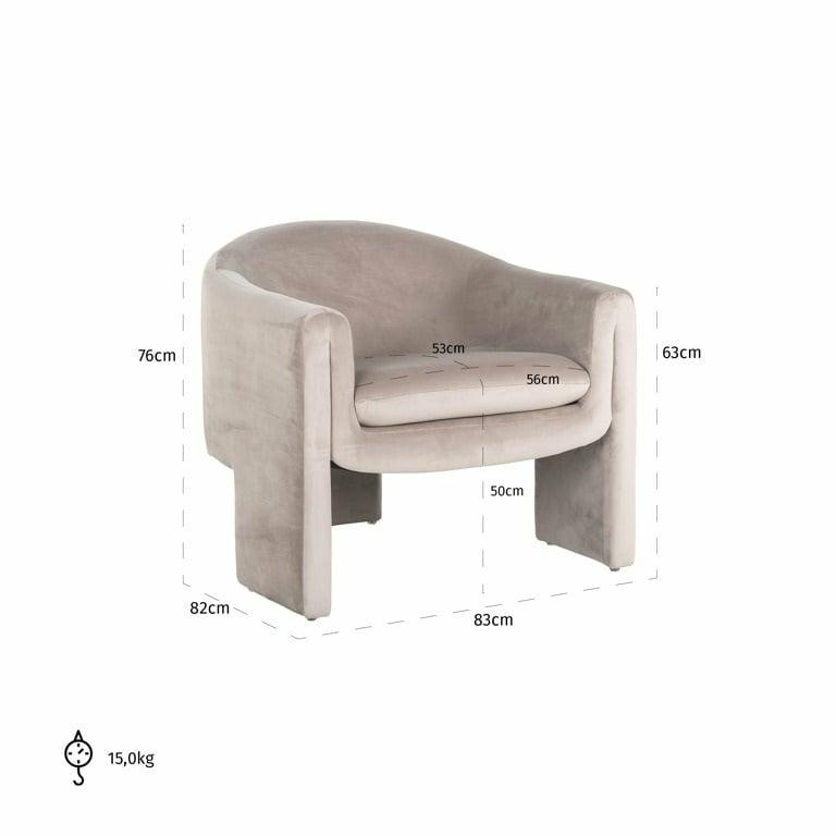 RICHMOND fotel CHARMAINE beżowy. Charmaine to fotel o ciekawym, wyjątkowym kształcie, który wprowadzi niecodzienny design w Twoim wnętrzu. Wygodne siedzisko wykończono w beżowej tkaninie welurowej, która jest bardzo przyjemna w dotyku oraz elegancka. Charmaine to produkt, który wprowadzi przytulności oraz ciepłego wyglądu do Twojego domu a każda chwila na nim spędzona będzie pełna relaksu. Dostępne różne warianty kolorystyczne. Wymiary: wys. 76 cm / szer. 83 cm / gł. 82 cm Waga netto: 15 kg.