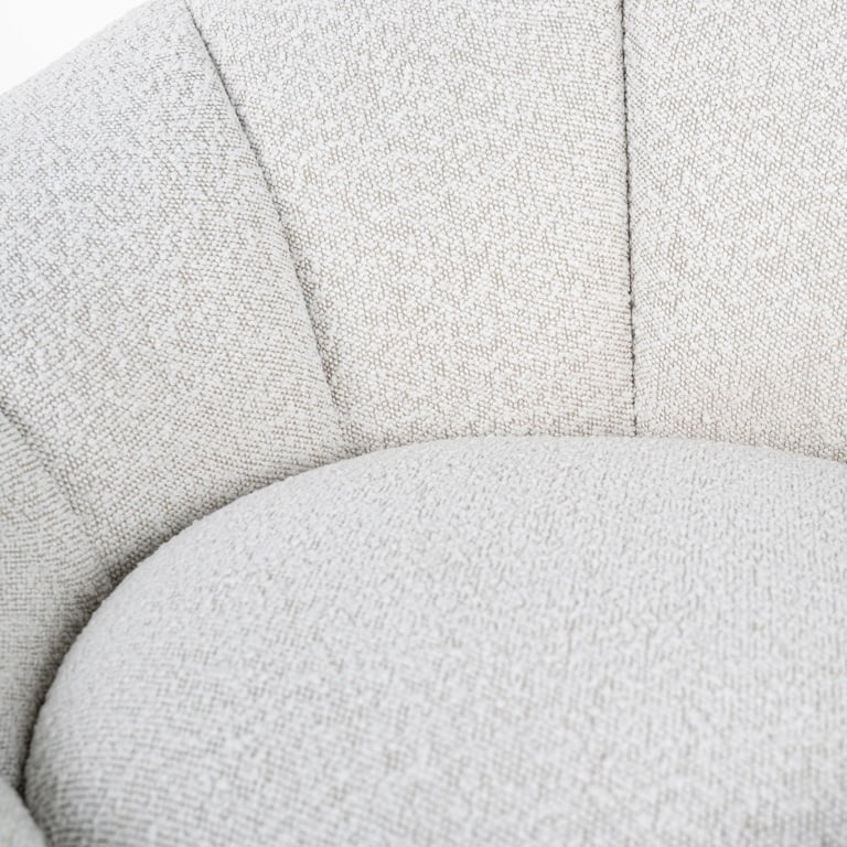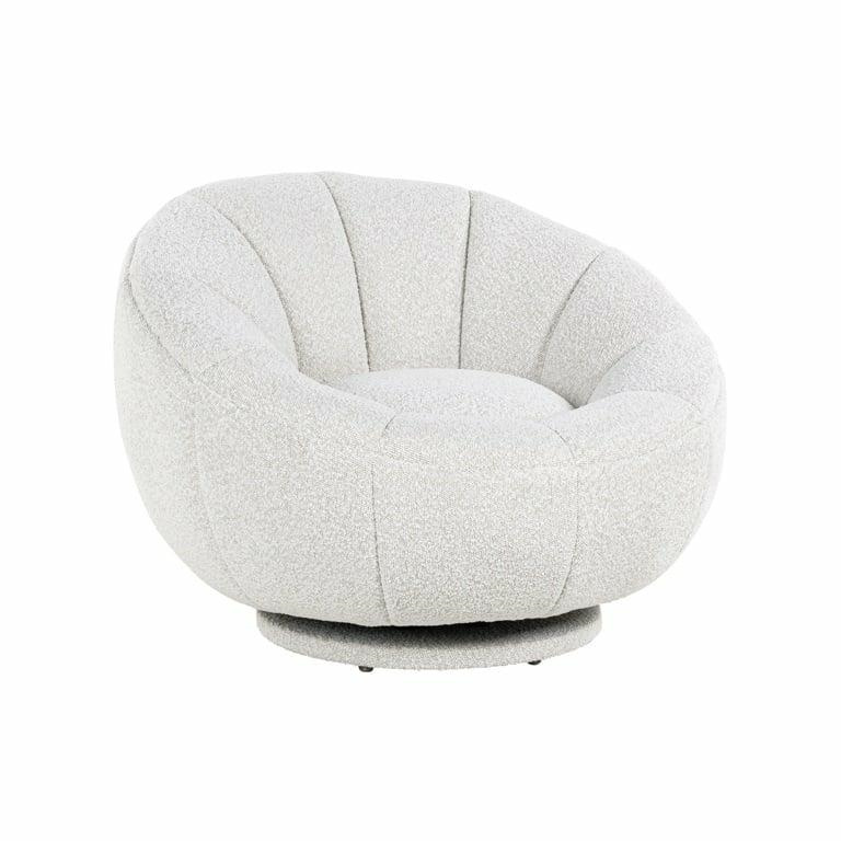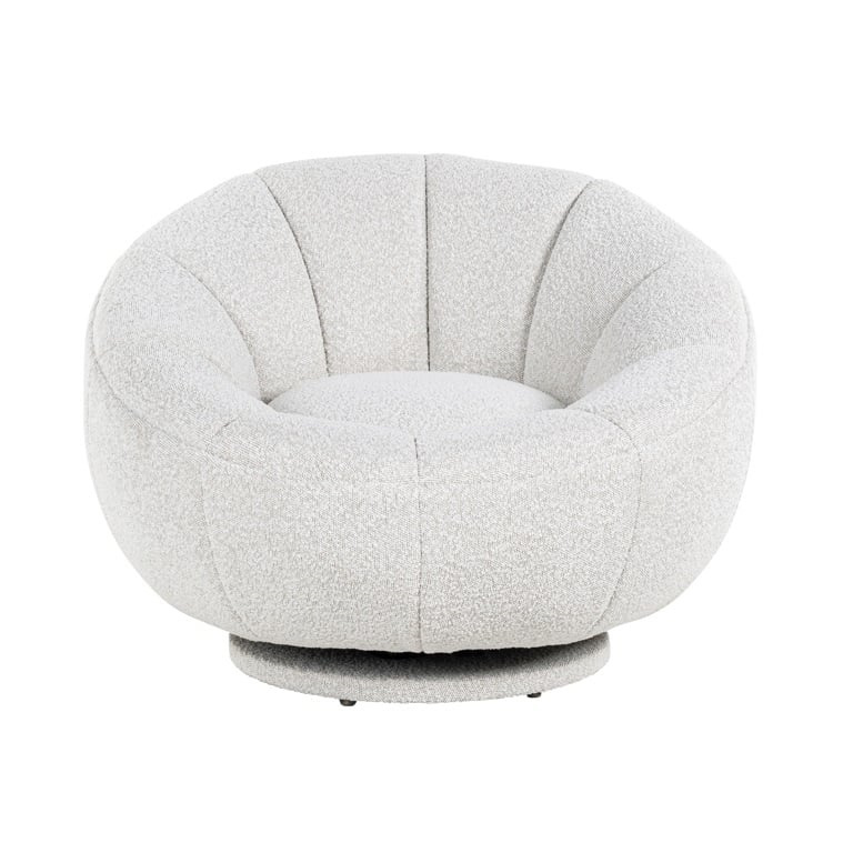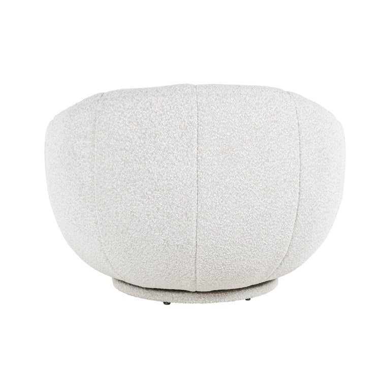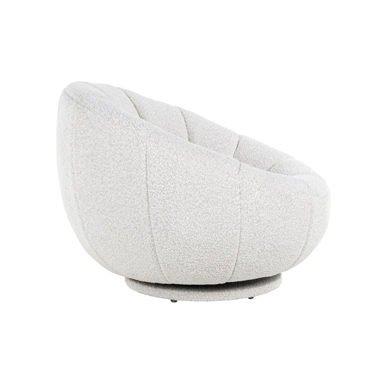 RICHMOND fotel obrotowy KENDALL BOUCLE biały. Kendall marki Richmond Interiors to elegancki i pełny stylu fotel obrotowy. Wygodne siedzisko tapicerowano modną tkaniną Bouclé w kolorze białym. Okrągły kształt, głębokie i solidne przeszycia, obrotowa podstawa sprawiają, że ten fotel idealnie nada się do stworzenia przytulnego miejsca w Twoim domu. Dostępne różne warianty kolorystyczne. Wymiary: wys. 67 cm / szer. 94 cm / gł. 91 cm Waga netto: 21,6 kg.