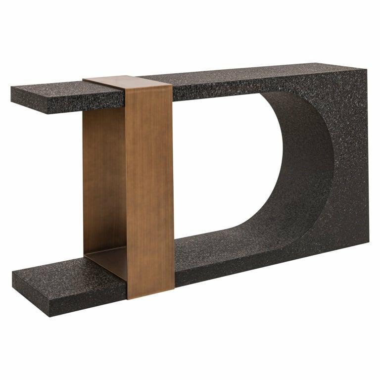 Nowoczesna konsola o rzeźbiarskiej formie, która przyciąga uwagę swoją wyjątkową konstrukcją i kontrastem materiałów.