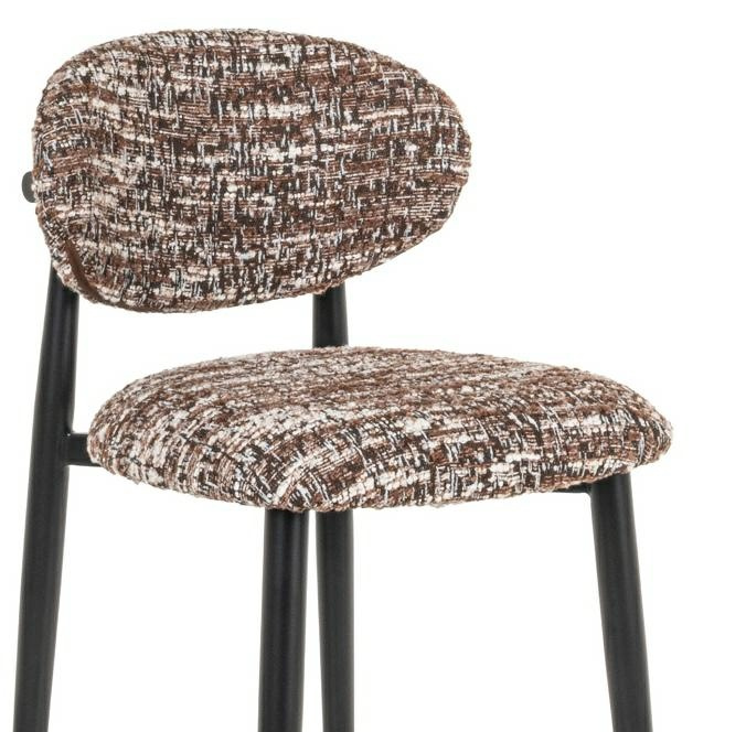• RICHMOND krzesło barowe DANTES hazel. Stylowe połączenie nowoczesnego designu i wygody. Tapicerowane siedzisko i oparcie przyciągają wzrok ciekawą, melanżową strukturą w odcieniach brązu i beżu. Smukłe, metalowe nogi w czarnym kolorze nadają lekkości i st