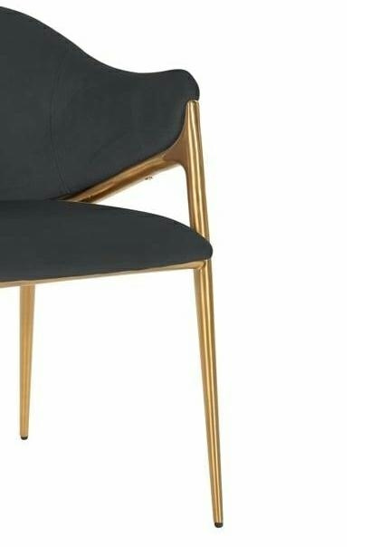 RICHMOND krzesło GWEN czarne. Stylowe krzesło Gwen marki Richmond Interiors charakteryzuje się luksusową i zgrabną formą. Siedzisko zostało tapicerowane przyjemnym w dotyku welurem w czarnym odcieniu. Złote akcenty ze stali nierdzewnej znakomicie współgrają z całością. Co więcej, użyte materiały są ogniotrwałe, co gwarantuje dodatkowe bezpieczeństwo dla Twojego domu. Krzesło Gwen to przede wszystkim komfort i ponadczasowa elegancja w nowoczesnym wydaniu. Dostępna także beżowa wersja. Wymiary: wys. 79,5 cm / szer. 54 cm / gł. 57,5 cm Waga netto: 8 kg.