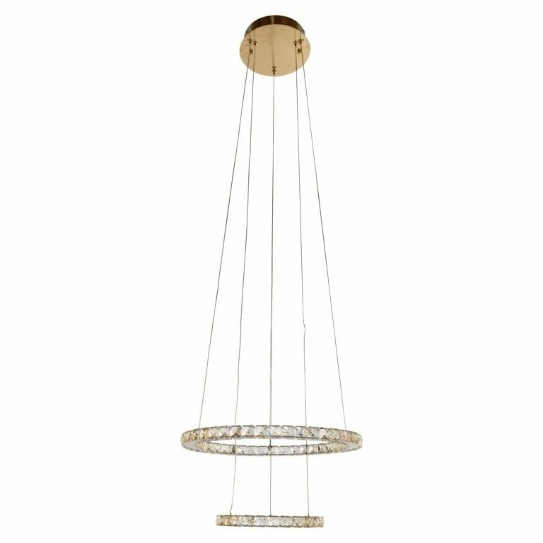 - RICHMOND lampa wisząca ALBA złota. Współczesne, eleganckie oświetlenie idealne do nowoczesnych wnętrz. Całość tworzą 2 piękne, kryształowe ringi o różnych średnicach, które opierają się na jednej okrągłej podsufitce. Wykonane zostały z bezpiecznego szkła