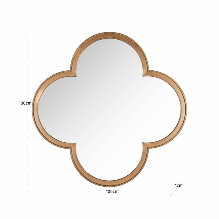 Oryginalny kształt inspirowany czterolistną koniczyną w połączeniu z ramą w kolorze szczotkowanego złota nadaje wyjątkowy, ponadczasowy charakter.