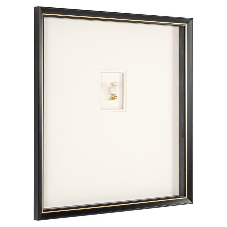 Kontrastująca czarna rama z delikatnym złotym akcentem podkreśla wyjątkowy charakter tej pracy.