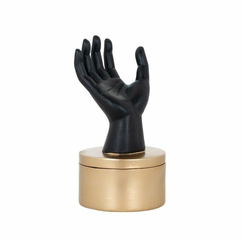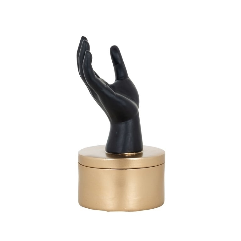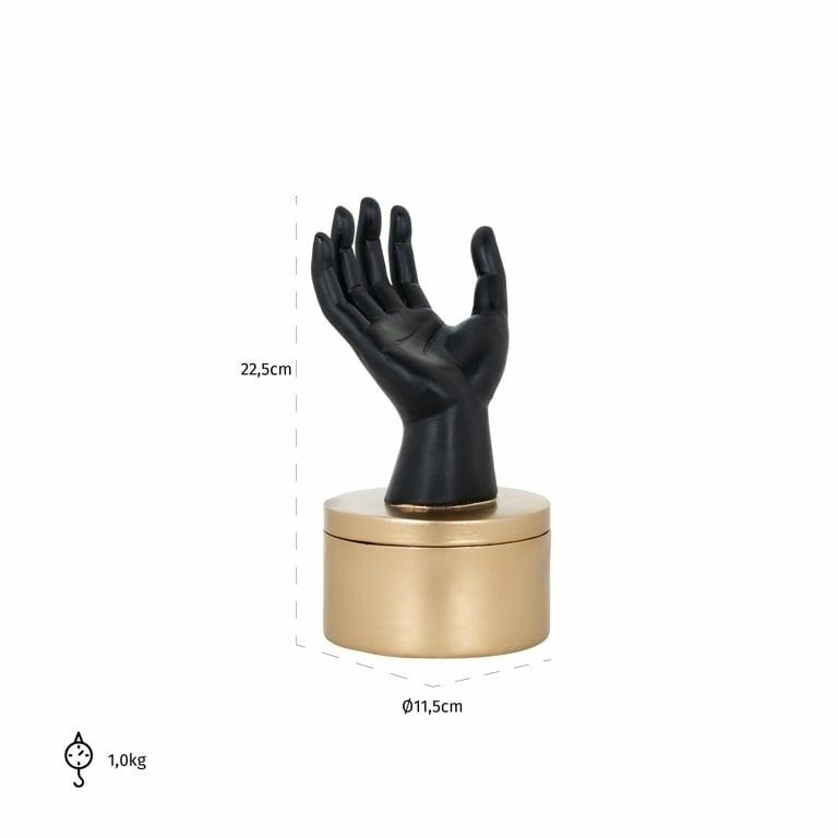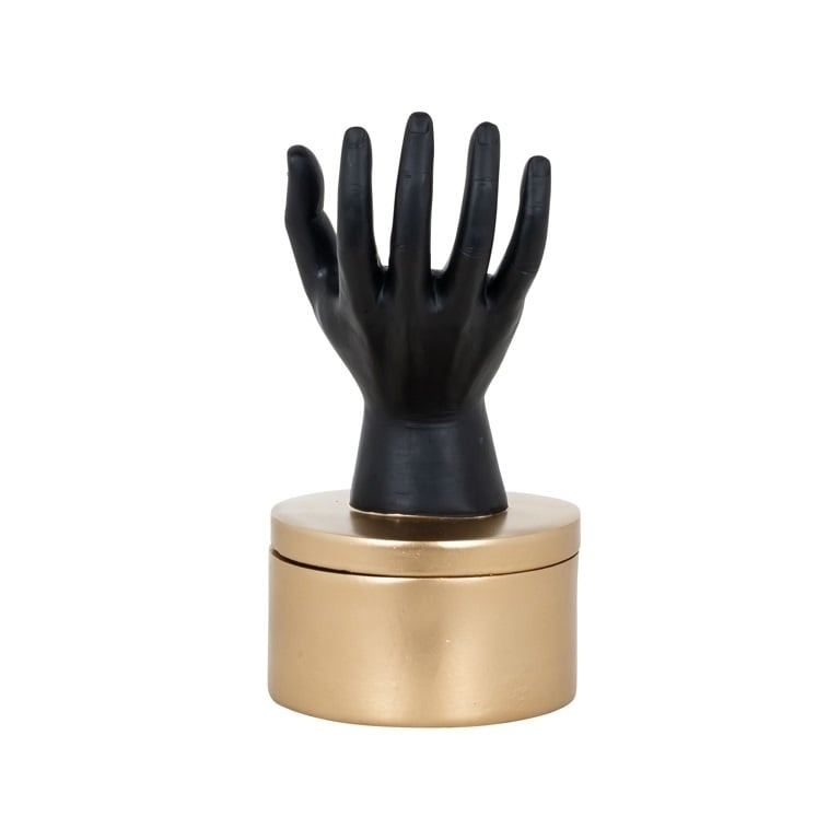 - RICHMOND pojemnik dekoracyjny JERSON charakteryzuje luksusowy i oryginalny wygląd. Składa się z pojemnika, skrywającego się pod przykrywką o kształcie dłoni. Ułożone dłonie mogą przyciągać uwagę miłośników niecodziennych produktów. Całość wykonano z żywic