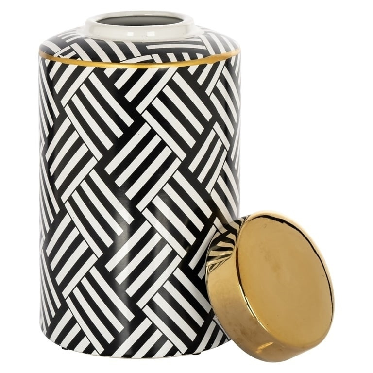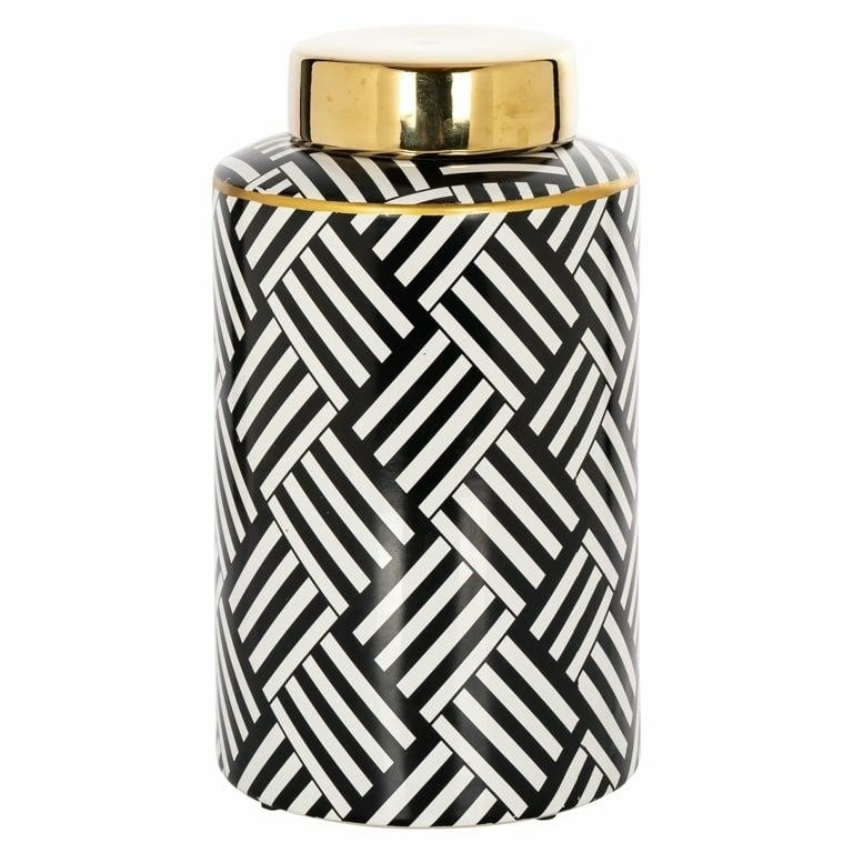 - RICHMOND pojemnik ozdobny/wazon LAVIEN. Elegancki element dekoracyjny wykonany w całości w wyniku połączenia kamienia i gliny. Lavina prezentuje się cudownie dzięki stonowanej kolorystyce i delikatnym złotym akcentom. Geometryczne wzory dodają mu poczucia