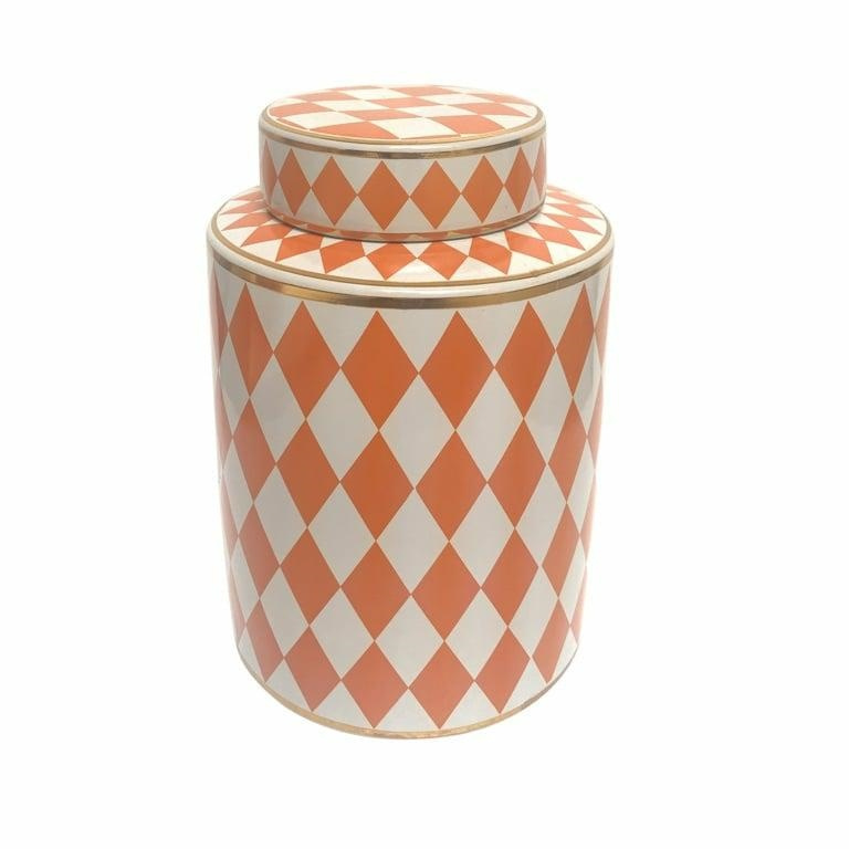 - RICHMOND pojemnik ozdobny/wazon LONNE. Elegancki element dekoracyjny wykonany w całości w wyniku połączenia kamienia i gliny. Lorelia prezentuje się cudownie dzięki stonowanej pomarańczowej kolorystyce i delikatnym złotym akcentom. Geometryczne wzory doda