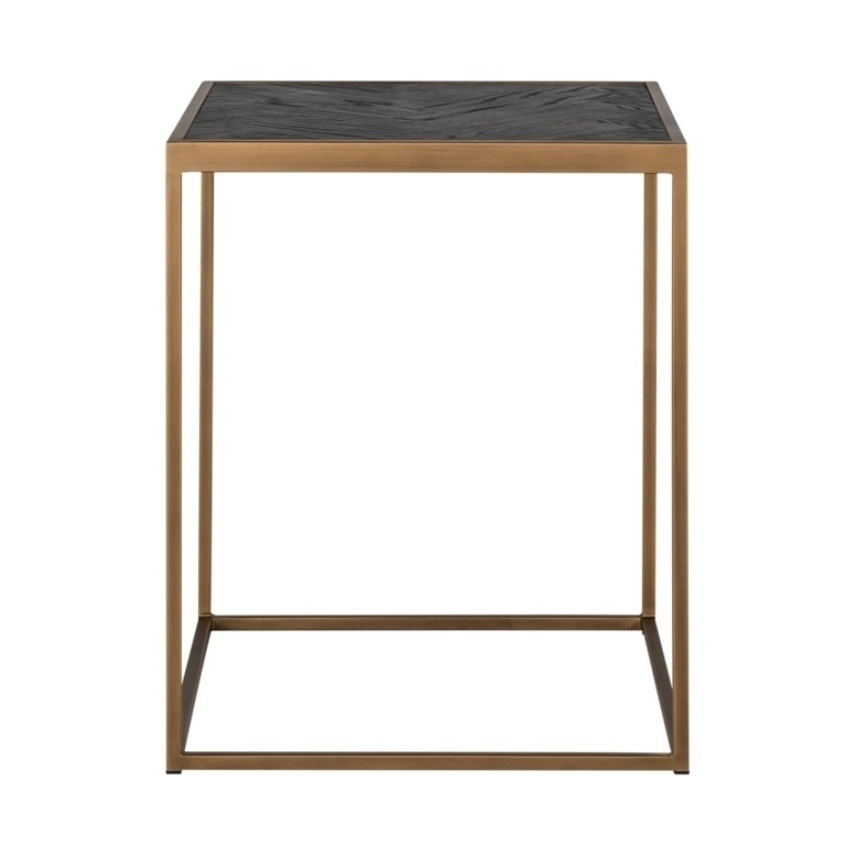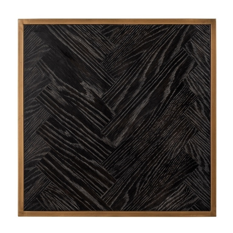 RICHMOND stolik BLACKBONE BRASS 50. Kolekcja Blackbone Brass to połączenie szykownego forniru dębowego o wzorze jodełki w kolorystyce czarnej i mosiężnej podstawy wykonanej ze stali nierdzewnej. Stolik idealnie ozdobi każde wnętrze, czyniąc go wyjątkowym. Polecamy zapoznanie się z całą kolekcją. Dostępny również w innych wersjach kolorystycznych ze srebrną bądź złotą podstawą. Wymiary: wys. 60 cm / szer. 50 cm / gł. 50 cm Waga netto: 6,5 kg.