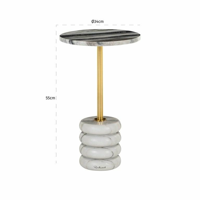 - RICHMOND stolik ISOLDE. Elegancki i nowoczesny stolik, który łączy w sobie luksusowy design i funkcjonalność. Wykonany z połączenia aluminium i marmuru, wyróżnia się solidną konstrukcją i unikalnym wyglądem. Okrągły blat o grubości 1,5 cm cechuje efektown