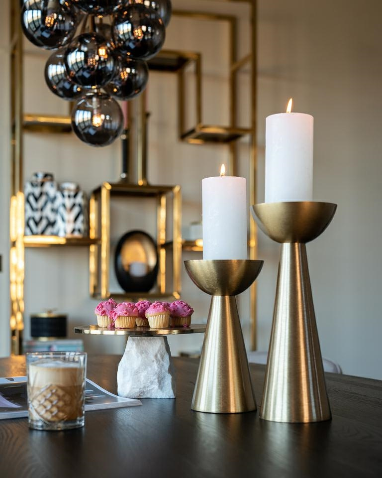 • RICHMOND świecznik AMAYA GOLD BIG. Jest wyszukanym dodatkiem do każdej przestrzeni. Świecznik został wykonany w całości z aluminium w kolorze złotym. Waga netto 1 szt.:1,32 kg Waga z opakowaniem: 1,5 kg Wymiary opakowania: 34 cm x 15 cm x 15 cm. Sposób wy