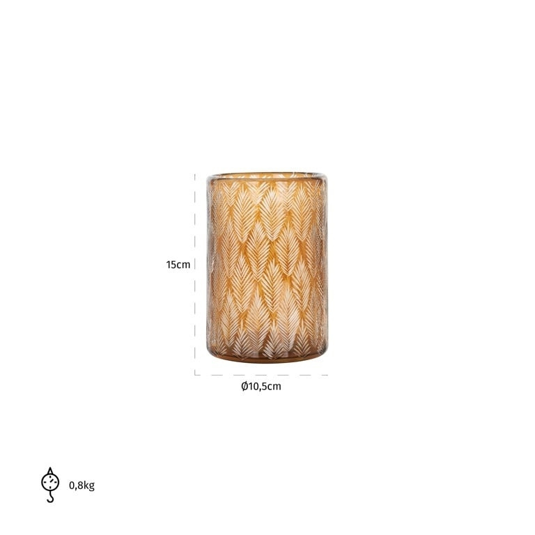 RICHMOND świecznik BERTIL S. Świecznik Bertil od marki Richmond Interiors to świetny sposób na udekorowanie wnętrza i stworzenie nastroju. Całość wykonano z kolorowego szkła, którego ozdobiono wzorami liści. Bertil będzie pięknym akcentem w każdym domu. Dostępna także większa wersja. Wymiary: wys. 15 cm / szer. 10,5 cm / gł. 10,5 cm Waga netto: 0,8 kg.