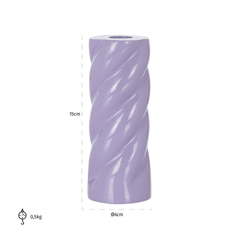 - RICHMOND świecznik SARAH S fioletowy. Ten świecznik z aluminium wyróżnia się subtelnym pastelowym kolorem, który natychmiast przyciąga wzrok i dodaje przyjemnej energii każdemu wnętrzu. Oryginalny kształt, przypominający sylwetkę świeczki, sprawia, że jes